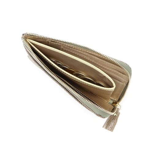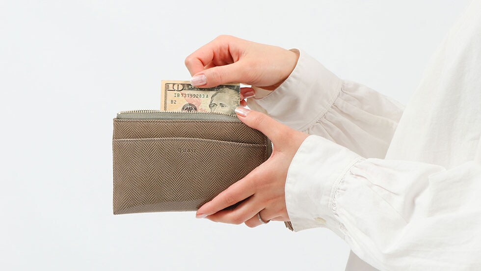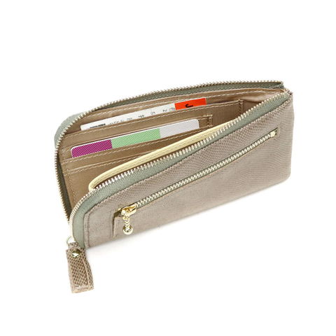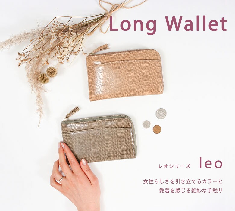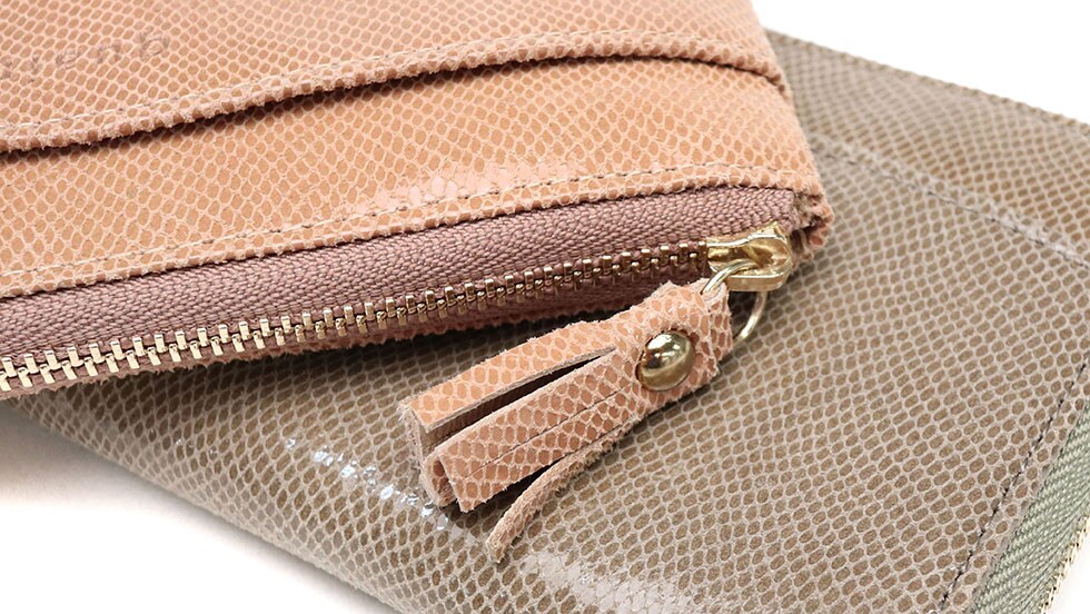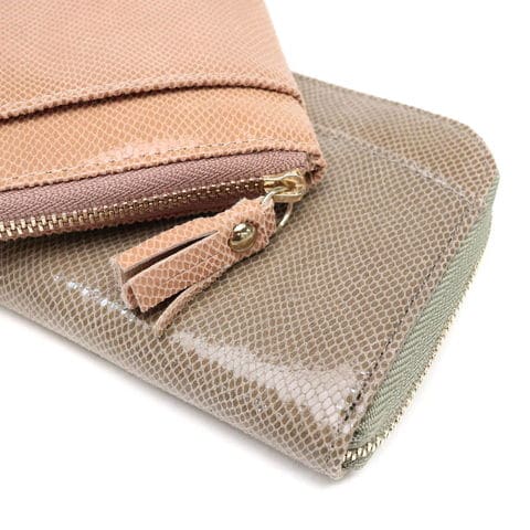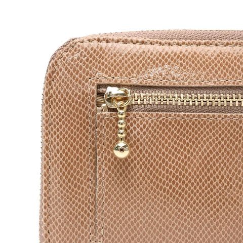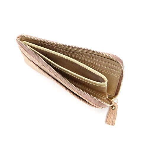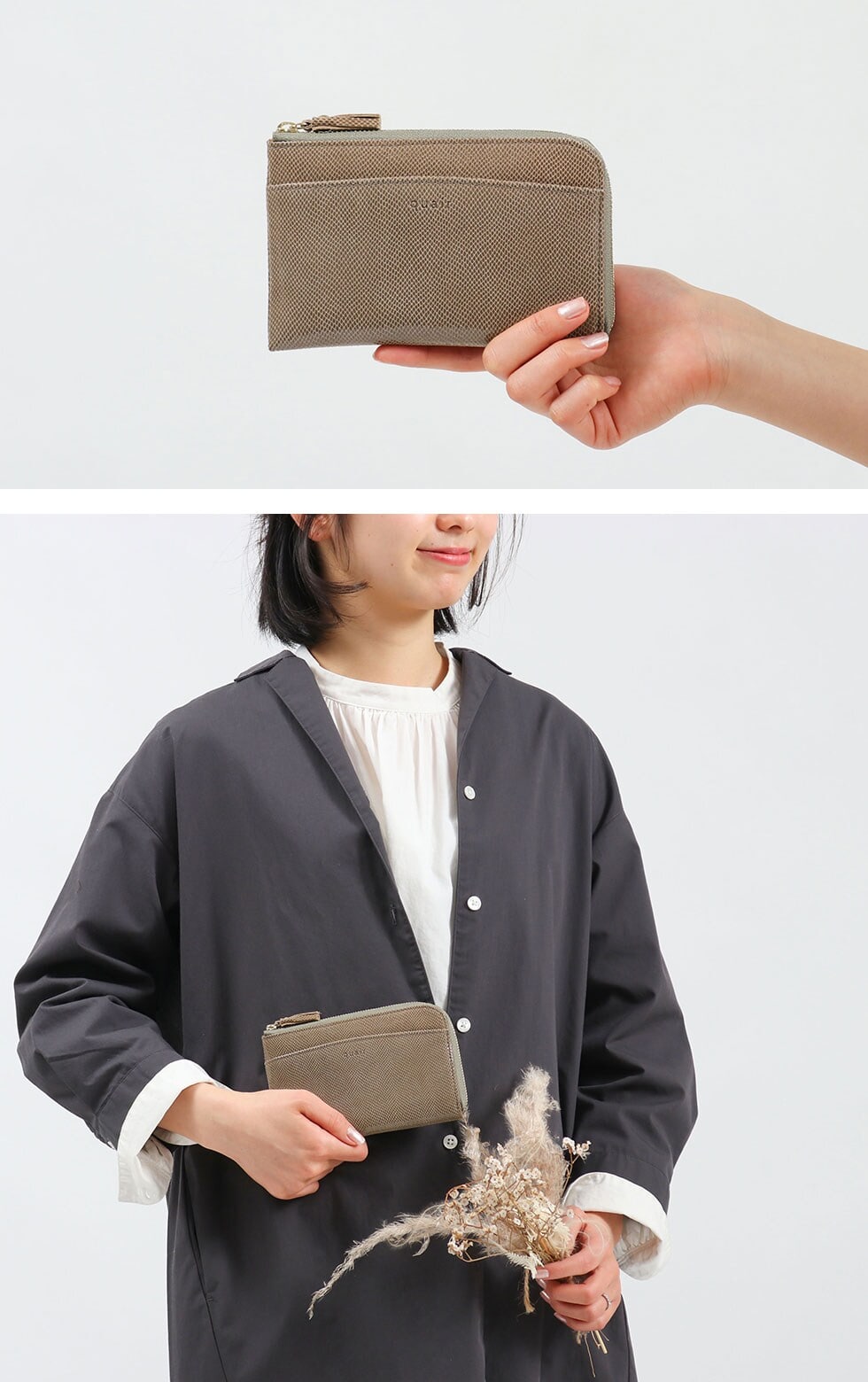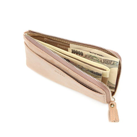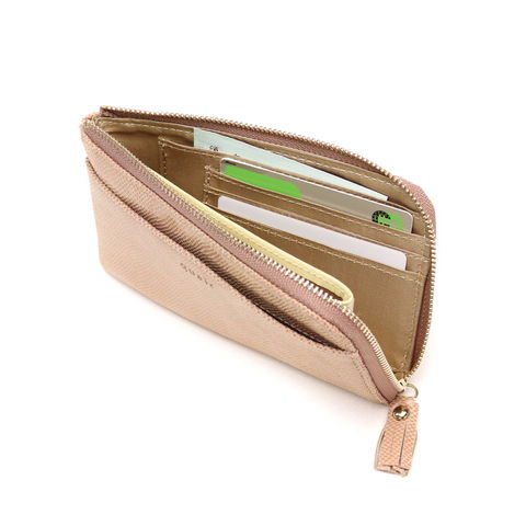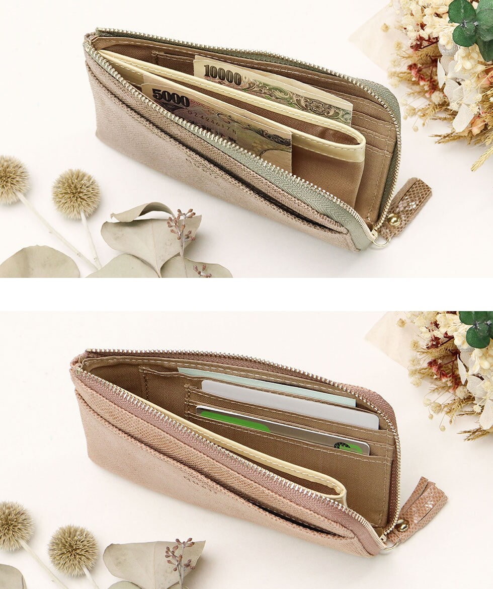 ゴートレザーに細かいリザード柄のデザインを落とし込んだ、上品さ溢れるL字ファスナー財布。すっきりとしたスリムなシルエットながら、必要な分はしっかりと収まるサイズ感がポイント!他にはない心地良い手触りと女性らしさを引き立てるヌーディーなカラー展開で、抜け感のある大人っぽい手元を演出します。