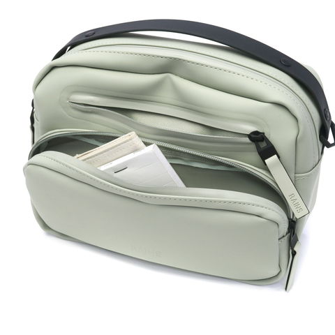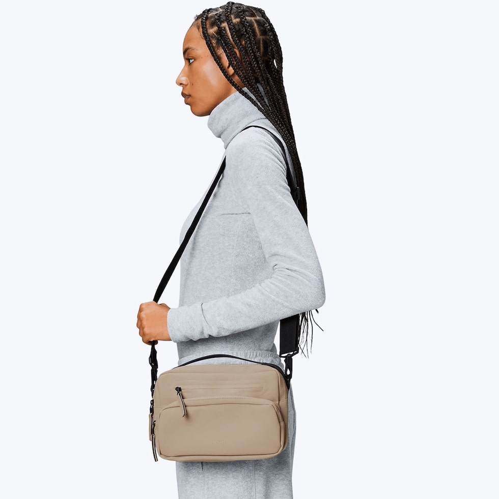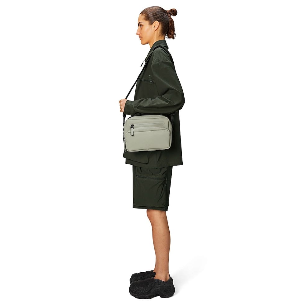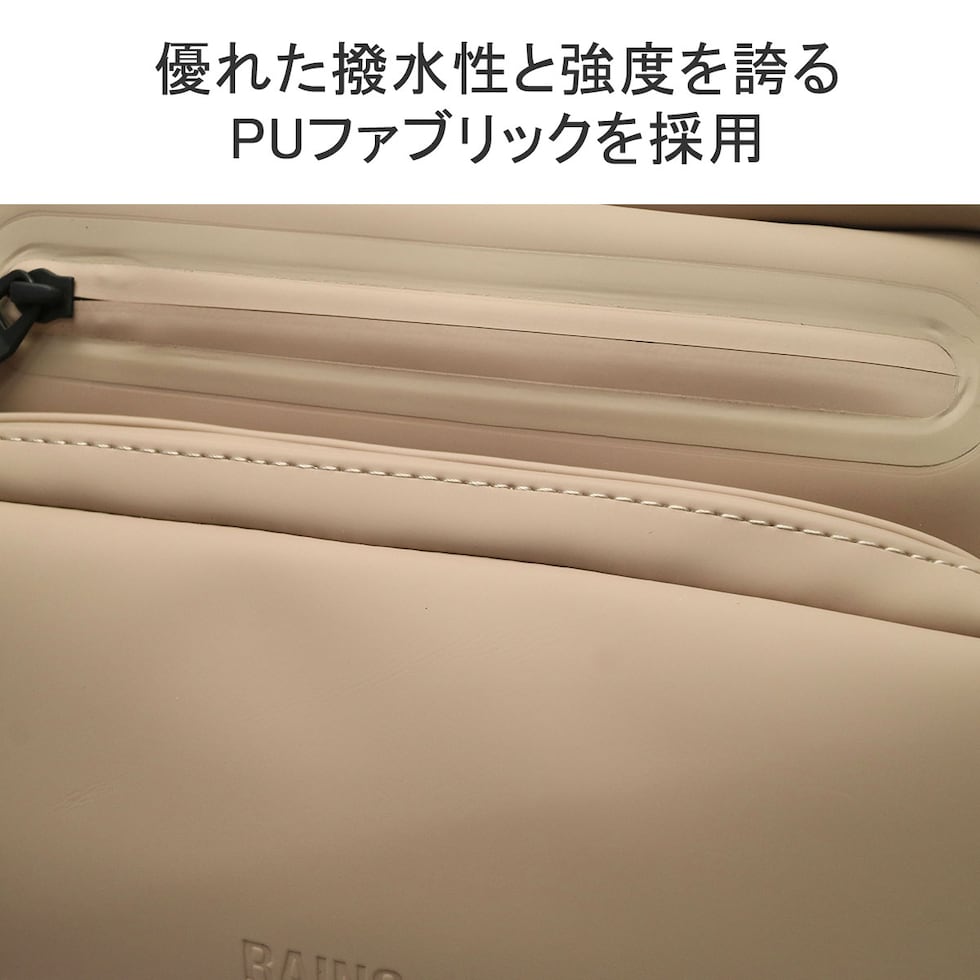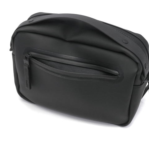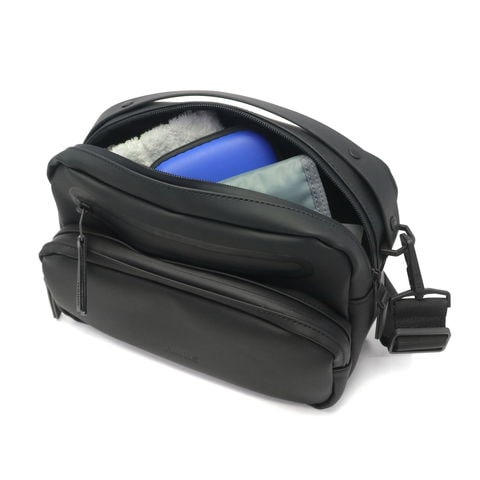 名の由来でもある「Box Bag」をスケールアップさせたのがこちらの2WAYショルダー「Cargo Box Bag」。ミニマムなフォルムはそのまま、収納部は広く、外側にはポケットを設置。持ち運べるアイテムの量&種類が増えました。素材にはPUファブリックを使用し、軽度の雨から大切な荷物をカバーします。