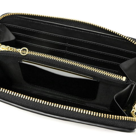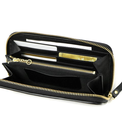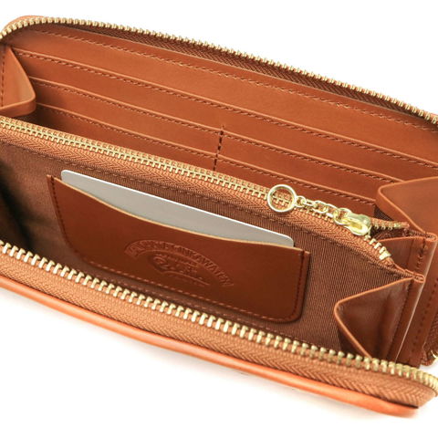 大きく開く収納部は、中央に小銭入れを挟んで両側に札入れを備えたベーシックなデザイン。計14枚のカードポケットで複数枚のカードもすっきりと収まります。シンプルながら必要な機能をしっかり備え、使い心地の良いつくりとなっています。