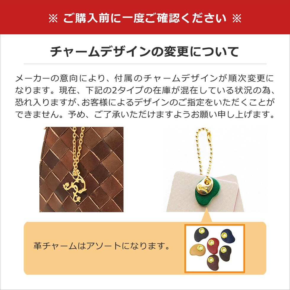 ・裏地、レザーチャームにつきましてはメーカーの意向により、予告なく変更となる場合がございます。デザインのご指定をしていただくことはできませんので、予めご了承ください。