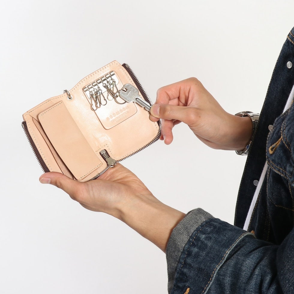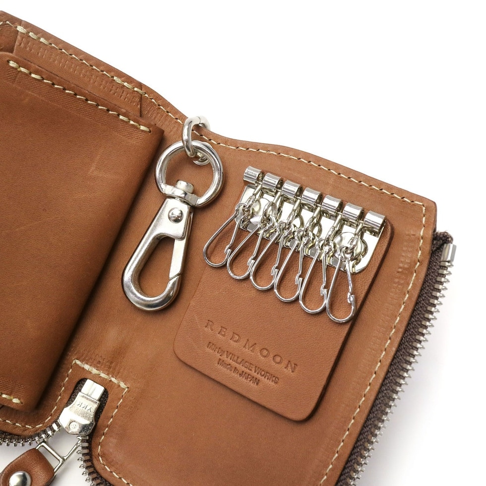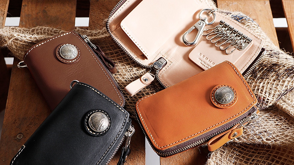 革の特性を活かしたシンプルな作りは、確かな技術力を持つ職人だからこそ製作できる「REDMOON」のキーケースです。レザーにオイルを多く含ませているので弾力に富んでおり、使うほどに手に馴染むのが魅力です。