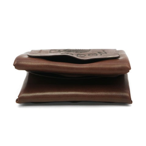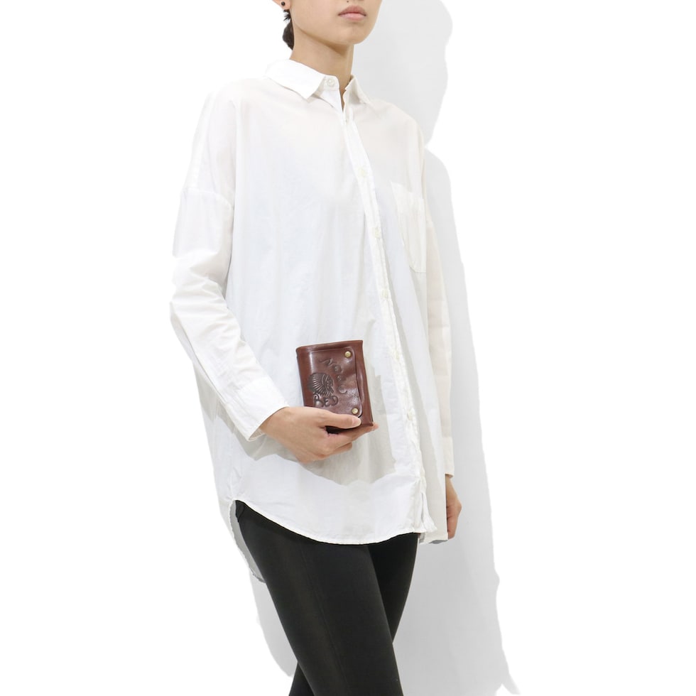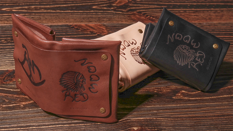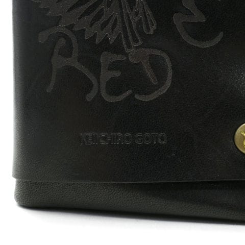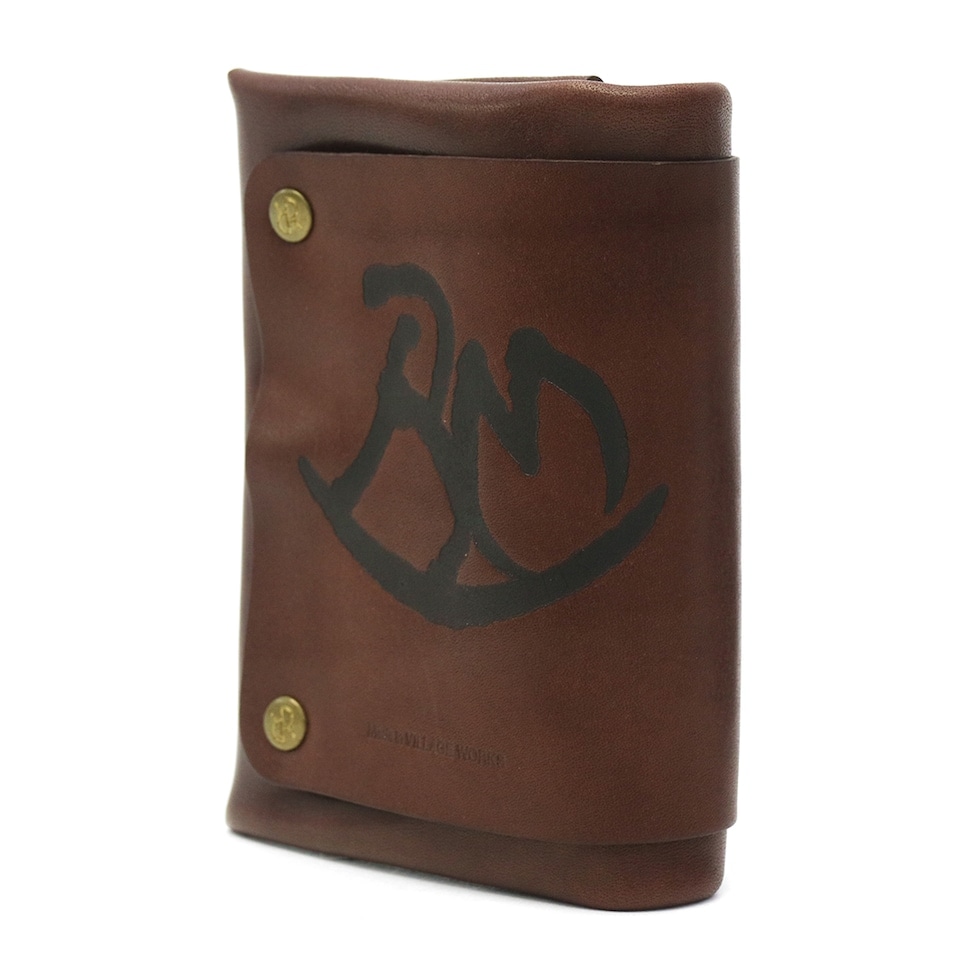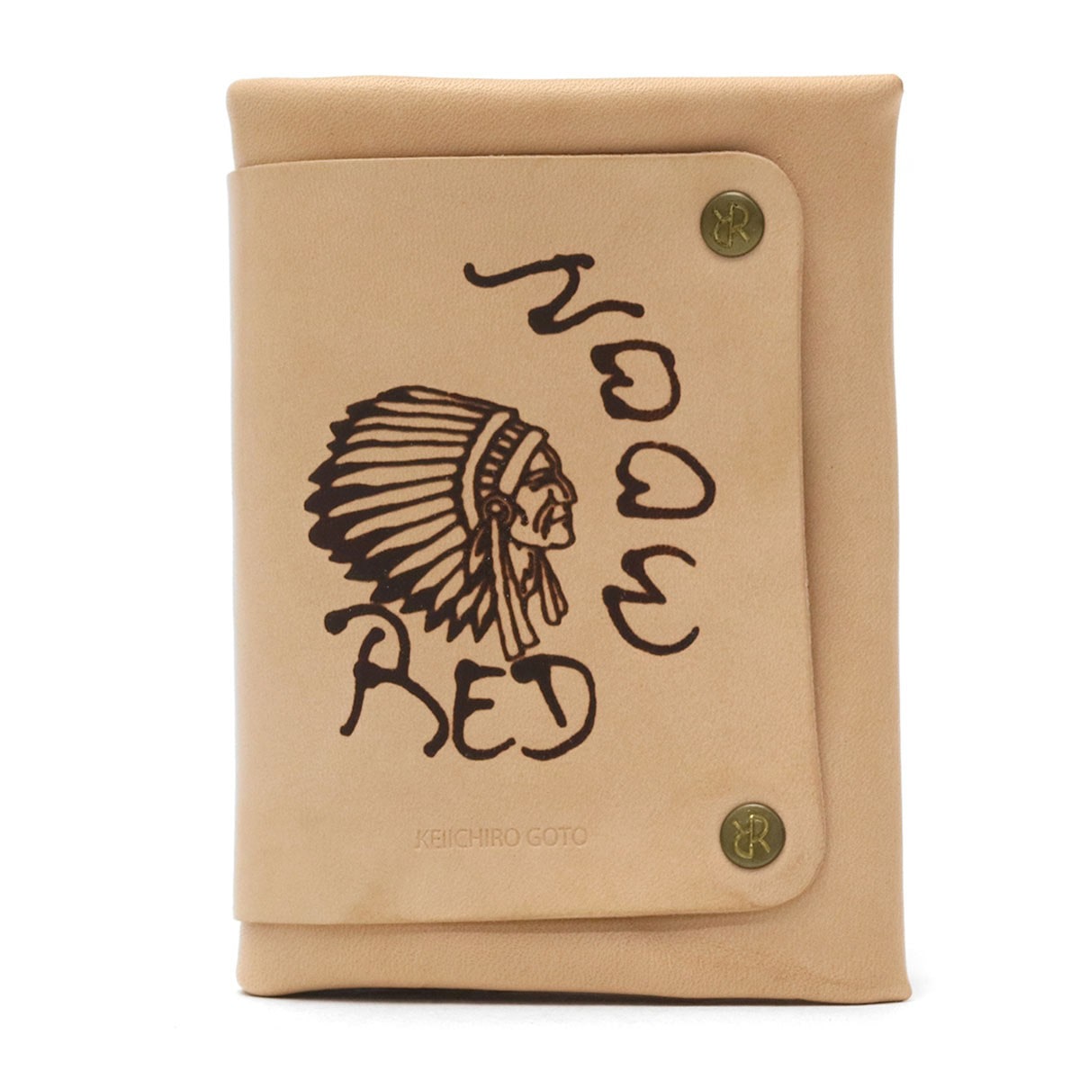 定番人気のゴーストモデルにレザーを2枚重ねることで、型崩れを防ぎつつも重みのあるシルエットに。さらに表面にはREDMOONの焼印をデザインしたインパクトのあるショートウォレットです。
