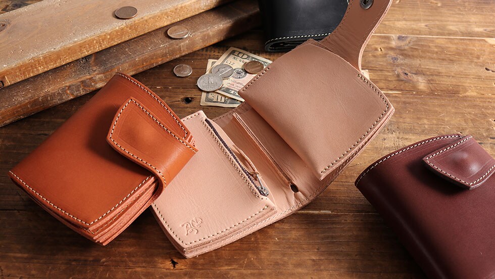 確かな職人の技術と高いコストパフォーマンスを誇る『MID LINE』の二つ折り財布。素材には国内で鞣した純国産のドラムサドルレザーを使用しており、お使いいただく日々とともに変化する表情をお楽しみいただけます。また、シンプルなルックスと、コンパクトなサイズ感で年齢問わず持ちやすいアイテムです。