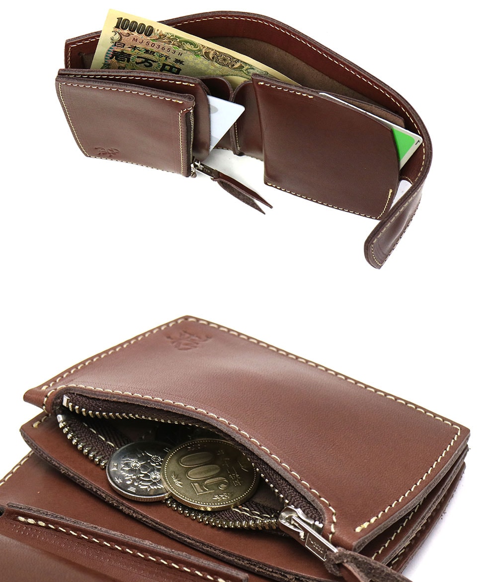 内装はお札入れと小銭入れ、ポケットが装備されたシンプルなつくり。お札入れにはスリットが入っており、紙幣の出し入れもスムーズです。また、2ヶ所に設けられたポケットはカードが複数収まるサイズ感になっており、必要なカードをまとめて管理したり、チケットを保管したりと自由にお使いいただけます。
