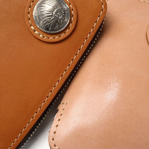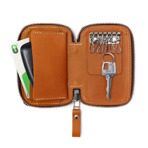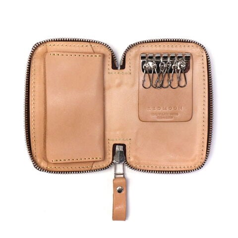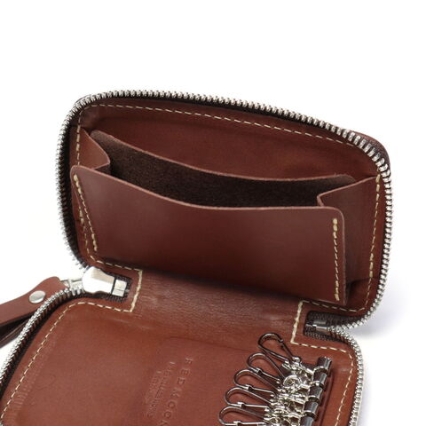 ラウンドジップ仕様のスタイリッシュなキーケース。ブランドを象徴する飾りボタンがアクセントになったシンプルなデザインで、カラーごとに異なる上質なレザーを使用しています。「オイルレザー」は使い始めから手なじみが良く、しっとりとした質感が魅力。「サドルレザー」は張りのある質感が特徴で、使うほどに飴色へと変化します。どちらも経年変化し自分だけの味わいをお楽しみいただけます。