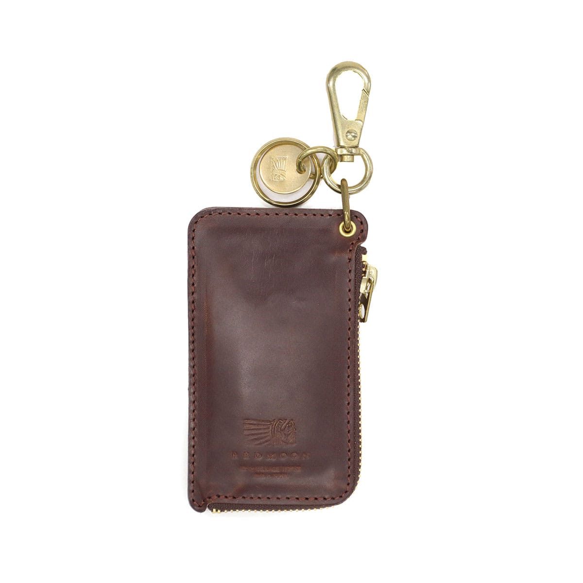 ホーウィン社のクロムエクセルレザーを使用したキーホルダー付き薄型スリムウォレット。L型ジップで開閉するミニマルデザインで、引き手はブランドオリジナルとなります。ナスカン付きでアクセサリー感覚でベルトループに着ける事が可能。真鍮の金具がクロムエクセルレザーの風合いをより引き立てます。