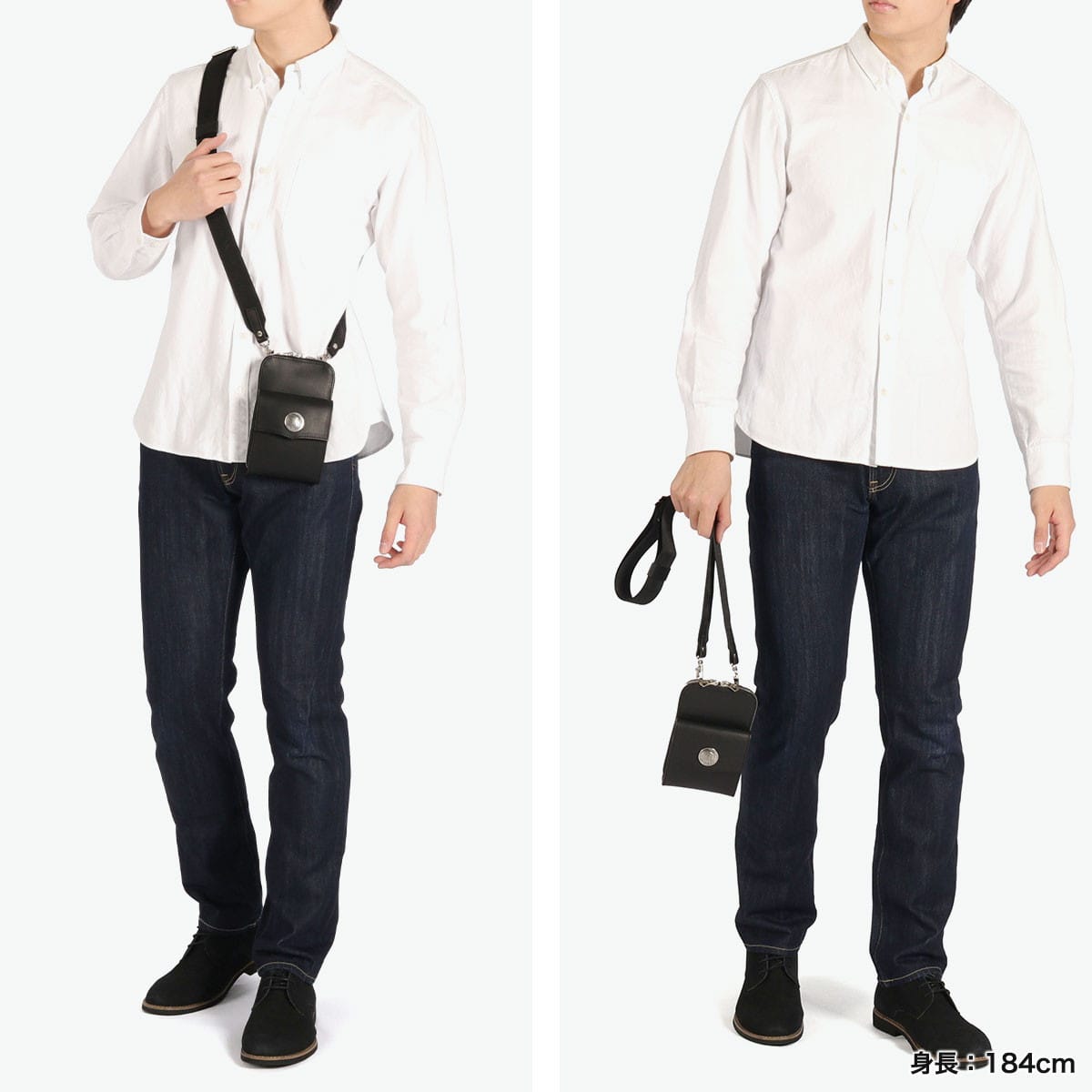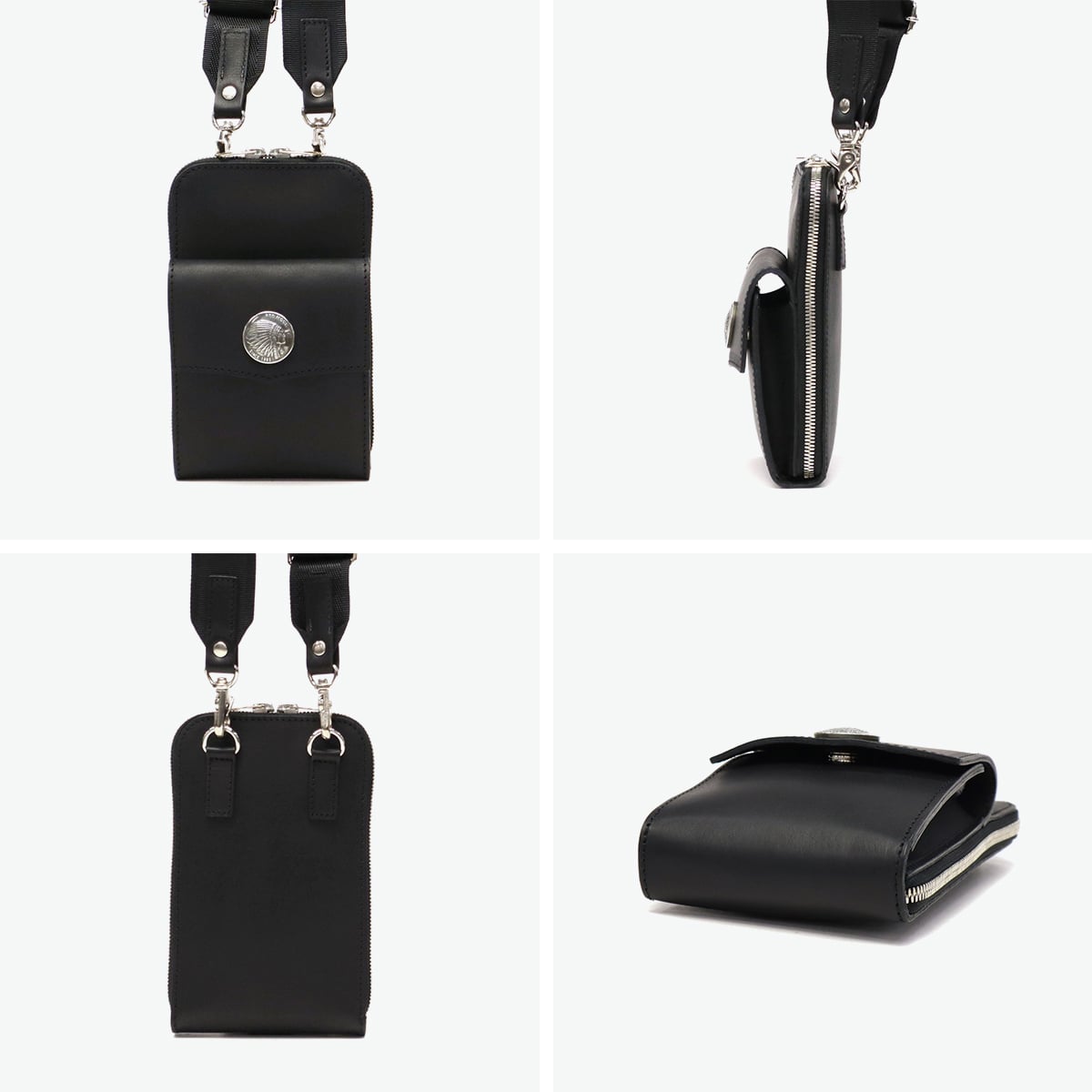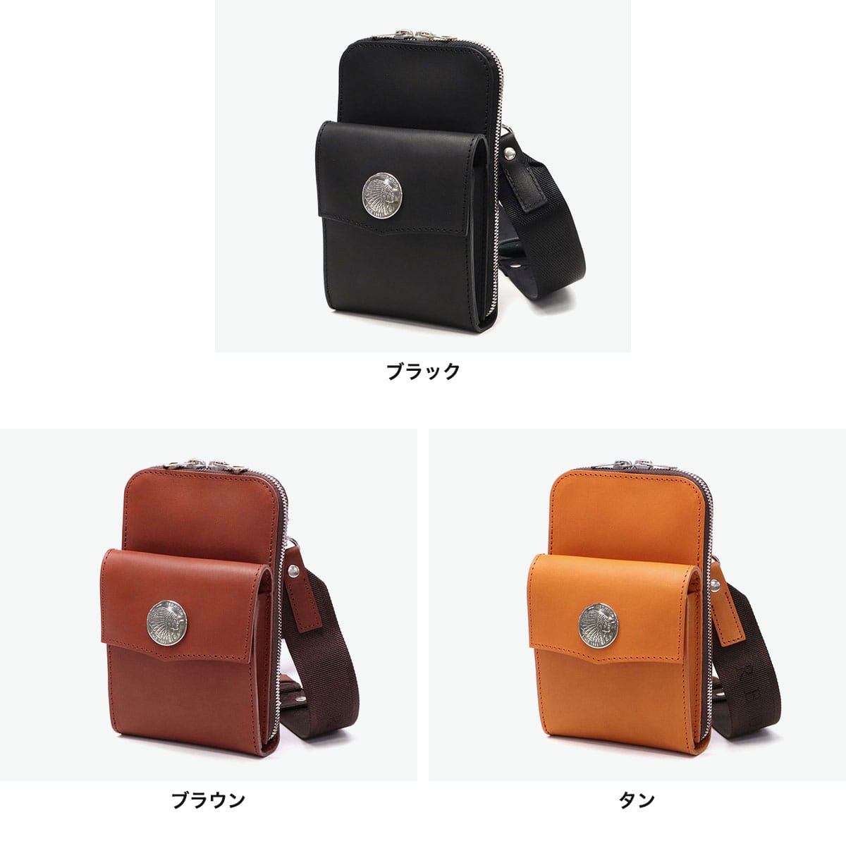 スマートフォンが収納可能なショルダーポーチ。フロントの大ぶりなフラップポケットと、ネイティブアメリカンのオリジナルコンチョがアクセントになったデザインです。オイルレザーは使い始めから手馴染みが良く、しっかりとした質感が魅力。必要最低限の荷物が持ち運べ、身軽なお出かけに最適なアイテムです。
