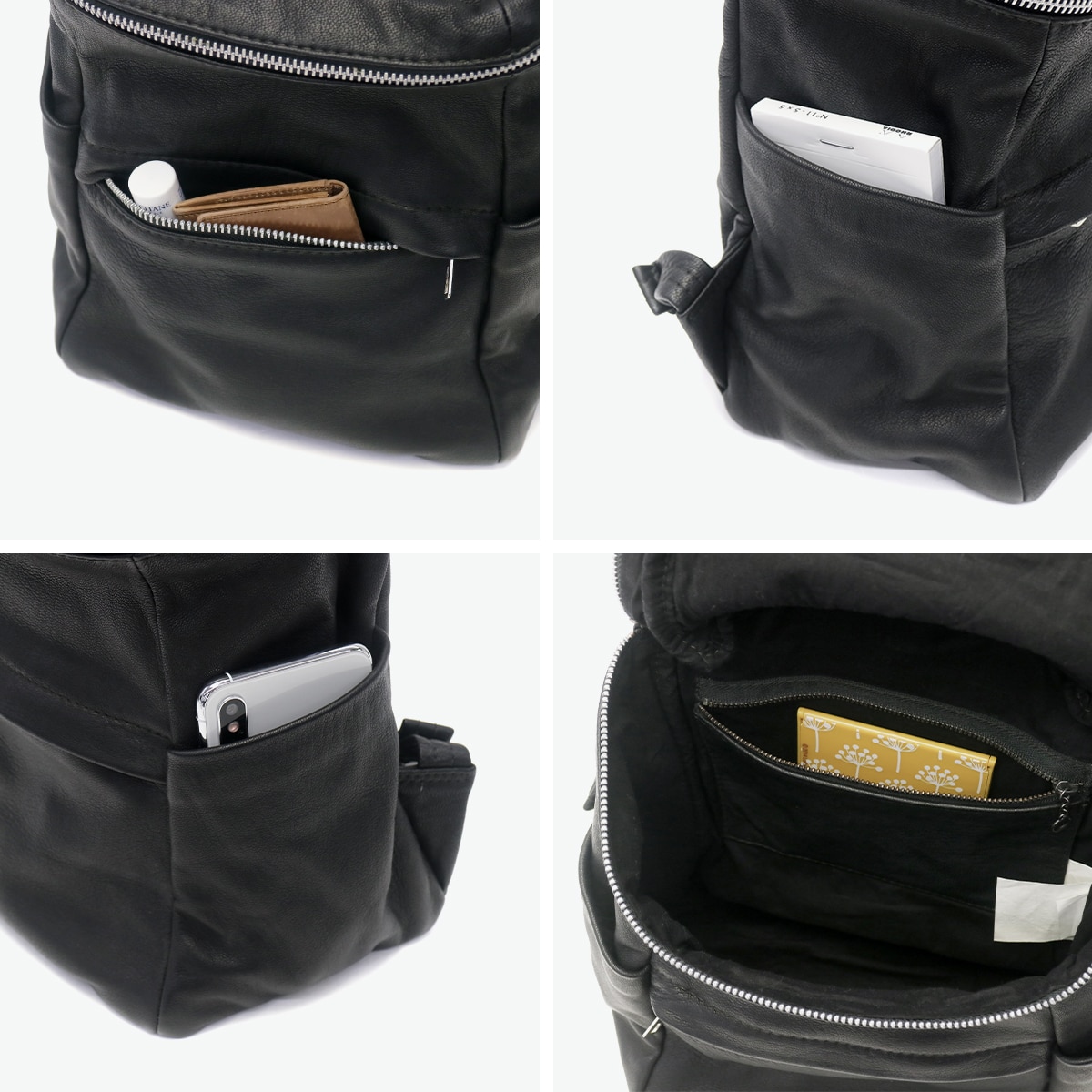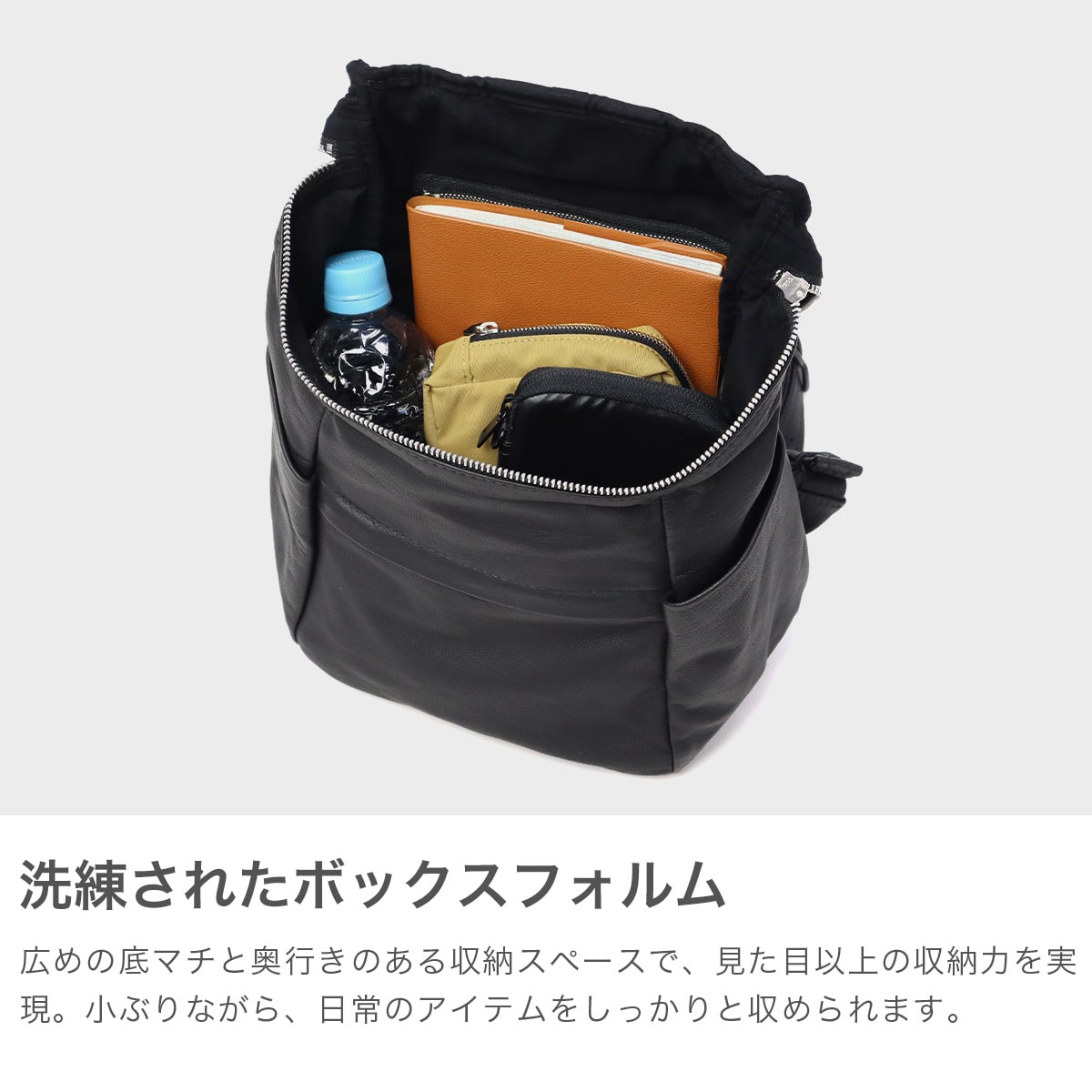 コンパクトなサイズ感がポイントのレザーリュック。金具以外すべてのパーツにレザーが使われ、くったりと吸い付くような背負い心地。小ぶりなサイズ感と素材の持つ柔らかな印象で、女性らしさを引き上げてくれます。まるで布製のバッグを持っているかのような、圧倒的な軽さ。普段持ち歩くアイテムは少ないけど、リュックでお出かけを楽しみたい方にも満足していただける仕上がりです。