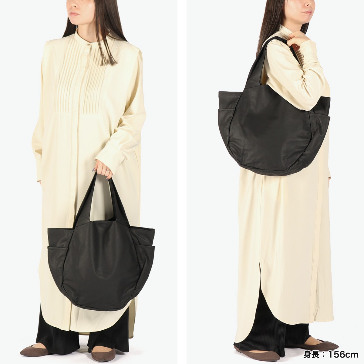 丸みある曲線で構成され、単純なラウンドバッグともつかないデザインの「パンプキンサック」のMサイズ。前後左右の生地をつなぎあわせることで見た目以上の収納力を実現。まさにそのかたちが使いやすさの秘密となっています。