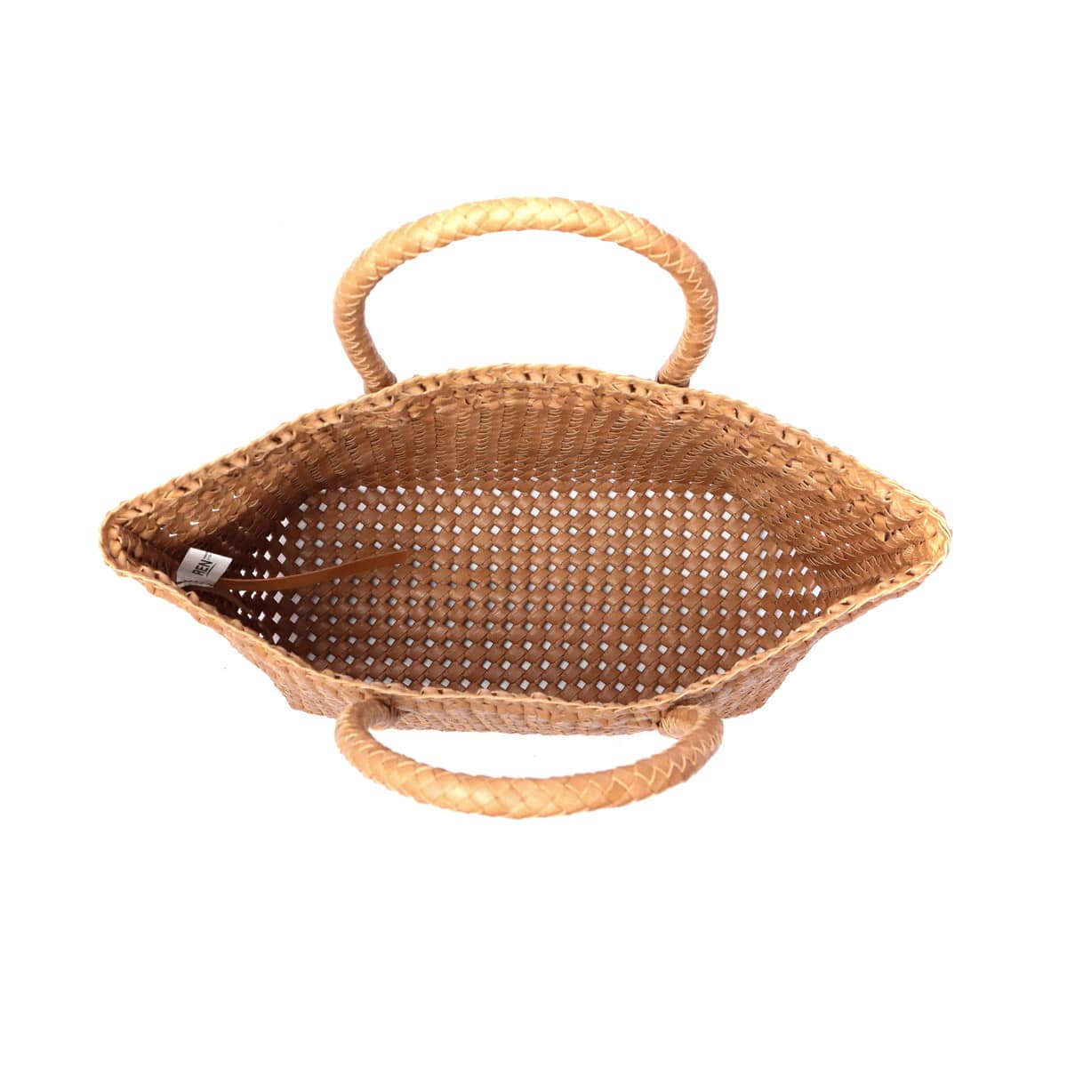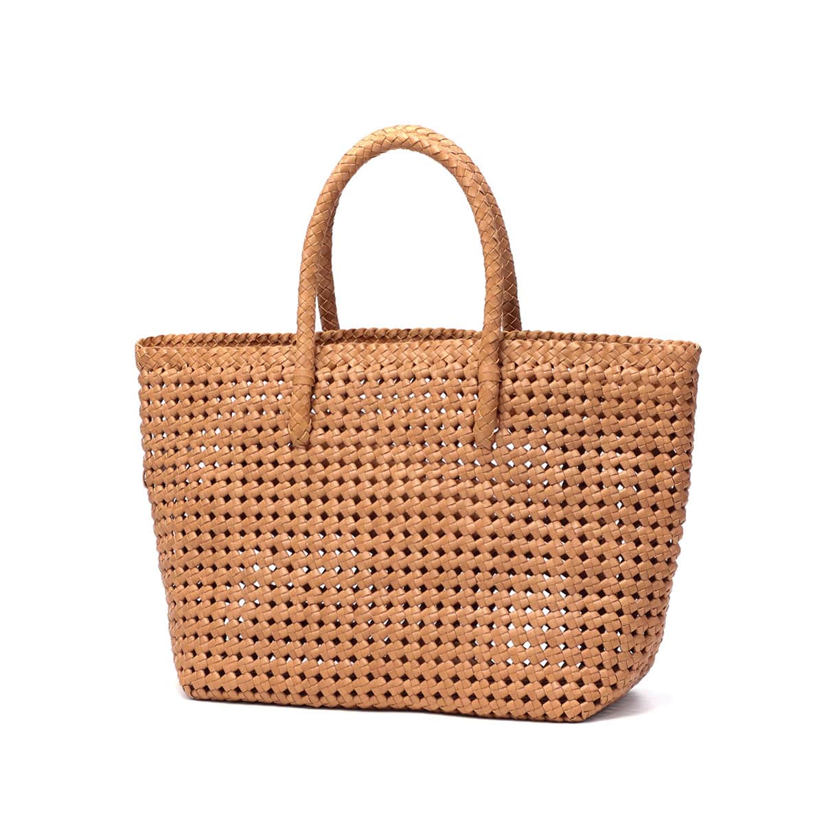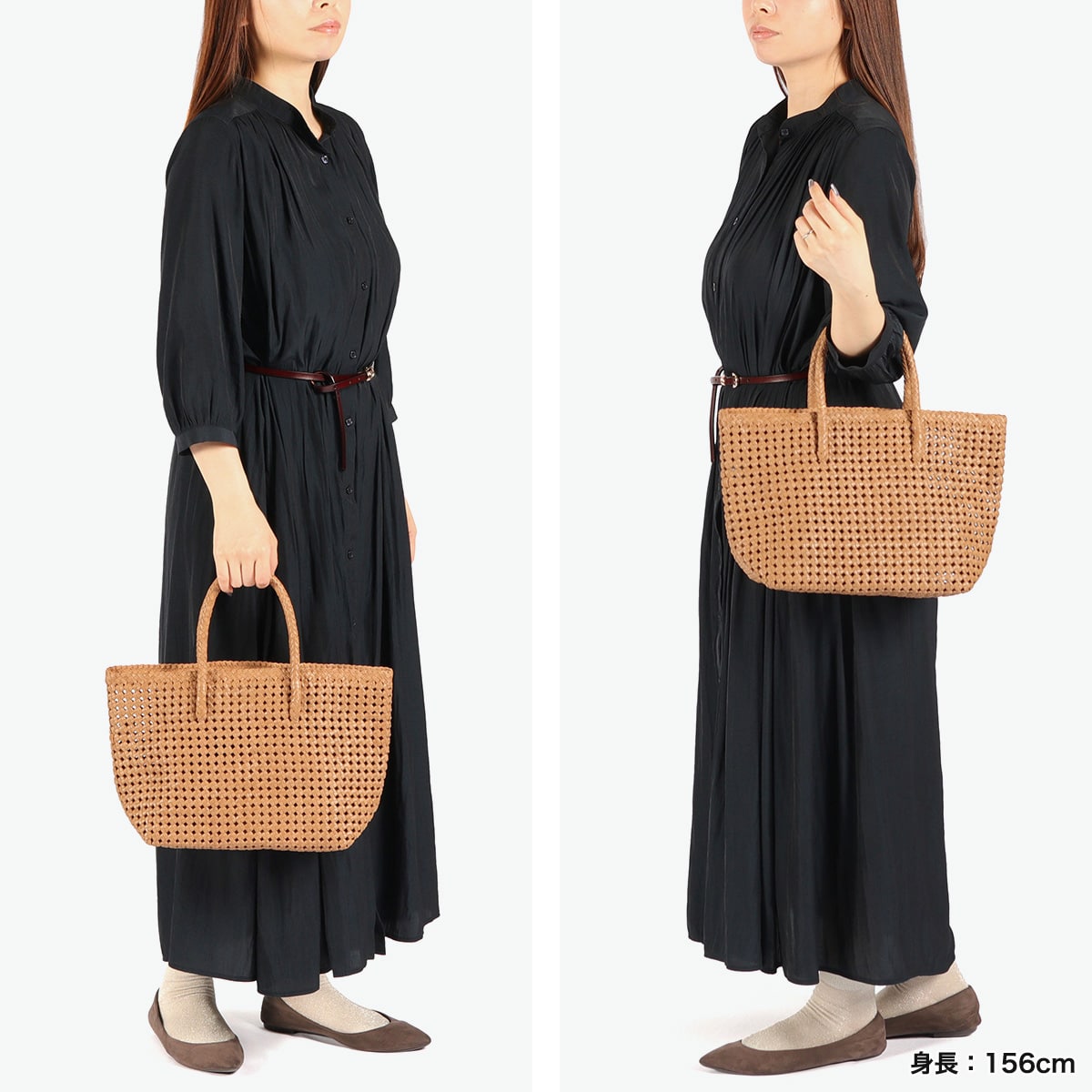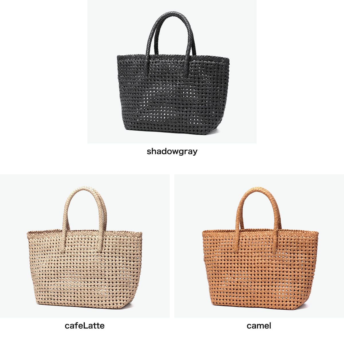 レザーをメッシュ状に編み込んだ、涼しげなデザインが魅力のトートバッグ。使い込むほど深みのある色に変化し、艶が増すレザーの味わいが際立つシンプルなルックスで、コーディネートのさりげないアクセントにもなります。