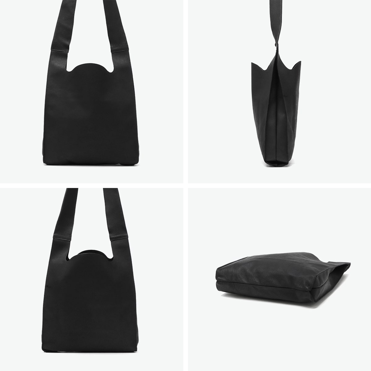ナチュラルな表情を持ったレザーをふんだんに使用し、シンプルに仕上げたショルダーバッグ。背負った際身体に優しく馴染む、柔らかな質感が魅力になっています。ショルダー部分を結ぶことで長さを変更し、肩掛け、斜め掛けとしても使用可能。シーンごとに使い分ければ、違った雰囲気をお楽しみいただけます。