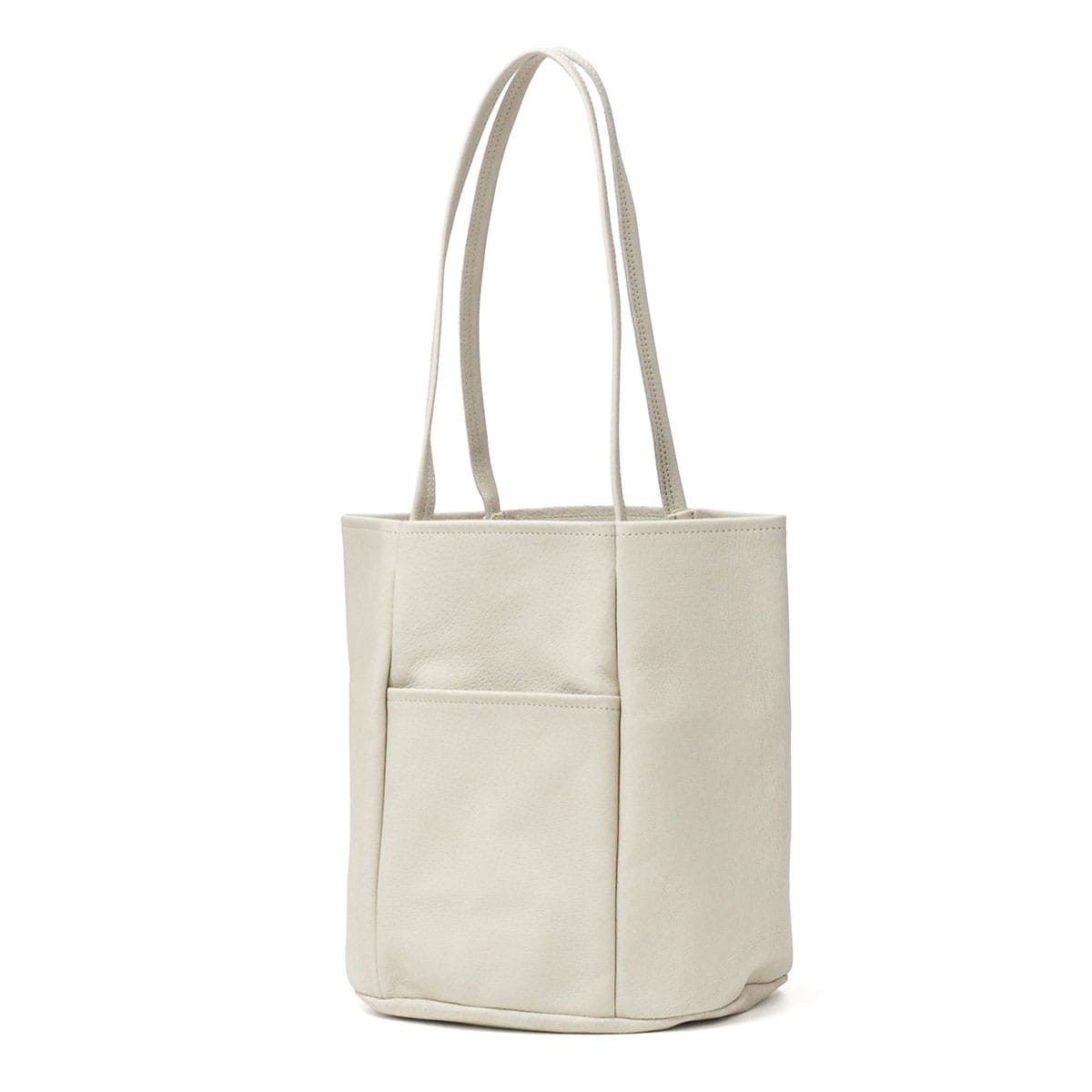 華奢で長めのハンドルとすっきりとしたフォルムが印象的なバケットトート。縦型で深さがあるので、ファスナーがなくても安心して使用できます。バッグを肩に掛けたままスマートに荷物を出し入れできるのもポイント。コロンとした可愛らしい形ながら、底部は正円ではなく楕円にすることで、甘くなりすぎず清潔感のあるスマートさをキープしています。