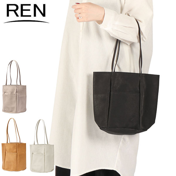 REN トートバッグ レディース 小さめ レン バッグ 軽量 軽い 革 本革 豚革 ブランド カジュアル きれいめ 上品 シンプル おしゃれ 肩掛け トート 縦型 日本製 A5 hallie バケットトート 1-30-20242