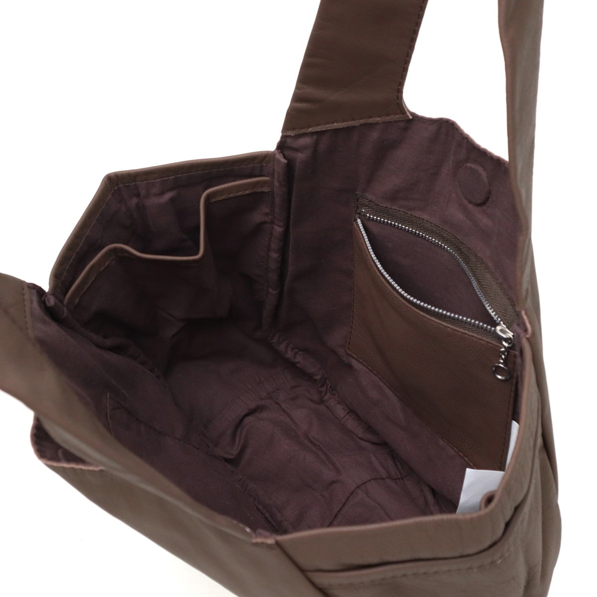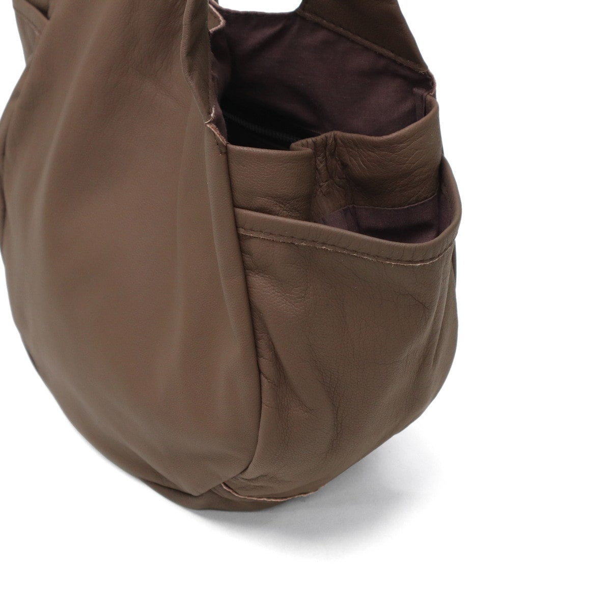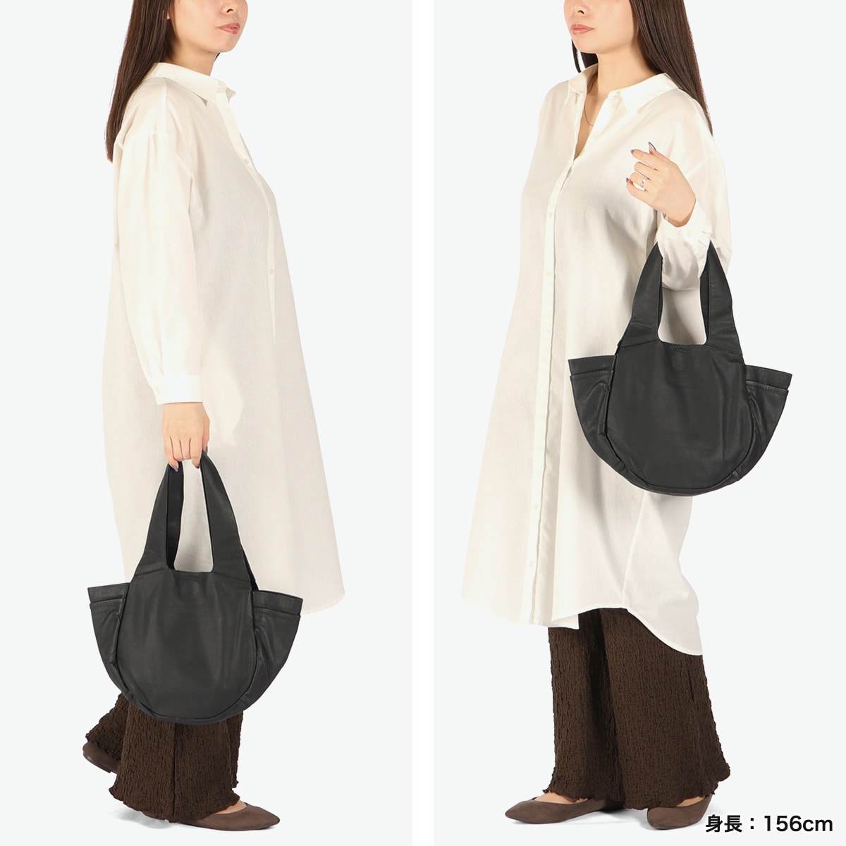 幅広ハンドルを採用し、持ちやすさと可愛らしさを両立したトートバッグ。くったりとした質感と自然な風合いにこだわったオリジナルゴートスキンを贅沢に使用しています。しっとりした柔らかな手触りで優しい雰囲気を持ち合わせている一方で、型崩れしにくい丈夫さがポイント。軽くて持ち運びもラクなので、毎日使いたくなるデイリーバッグです。