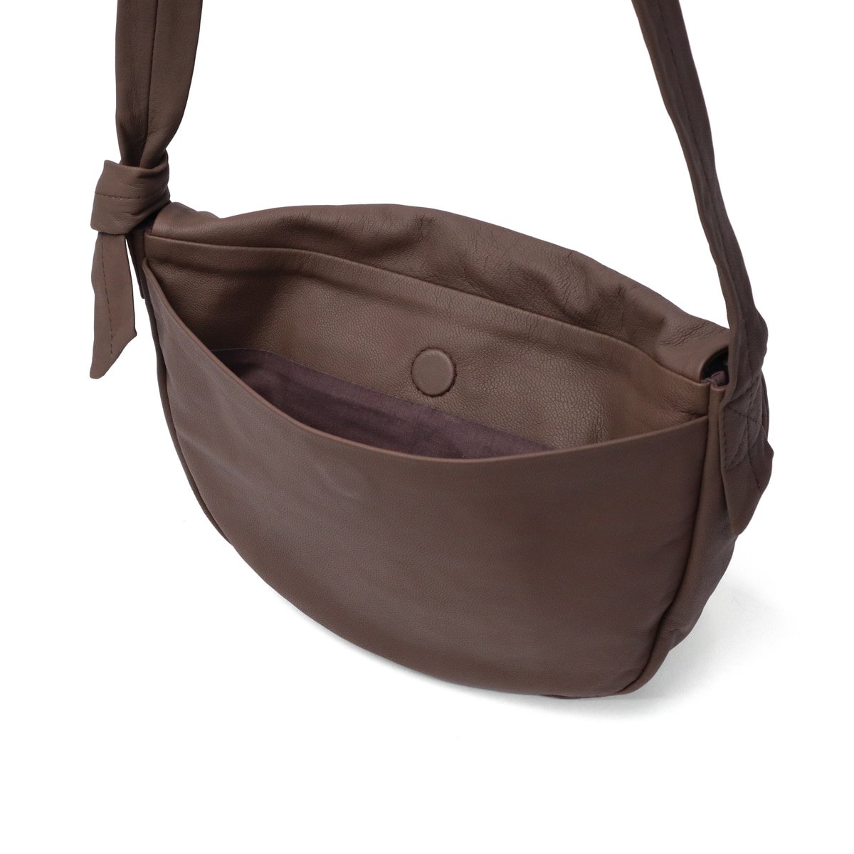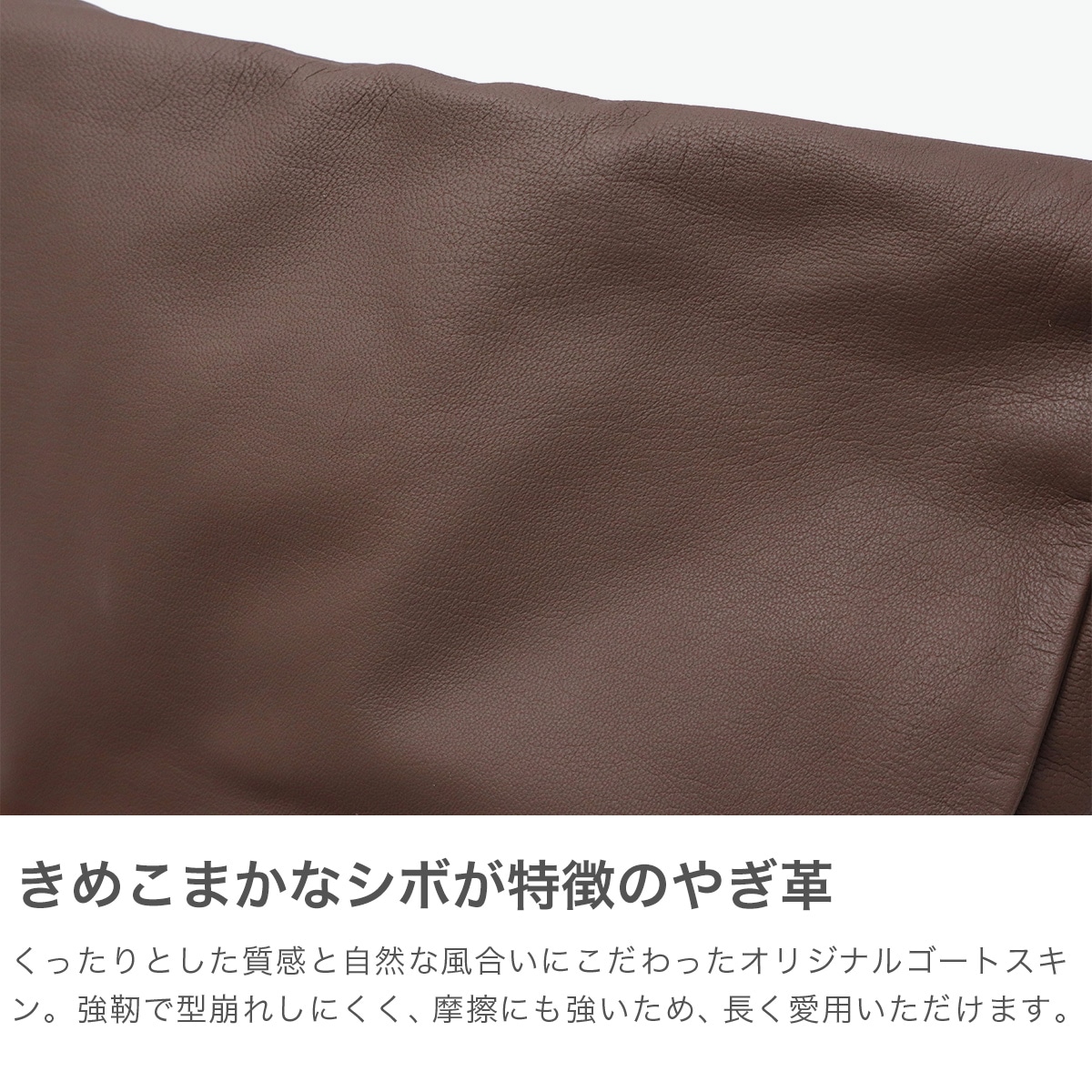 くったりとした質感と自然な風合いにこだわった、オリジナルゴートスキンを贅沢に使用したショルダーバッグ。マグネットタイプのフラップ付きで、中身が見えたりせず安心感抜群。レザーならではのしっかりとした存在感を持ちつつ、シンプルな佇まいはライトで軽やかな印象。バッグ自体も軽量で、どこへでも持っていきたくなるアイテムです。