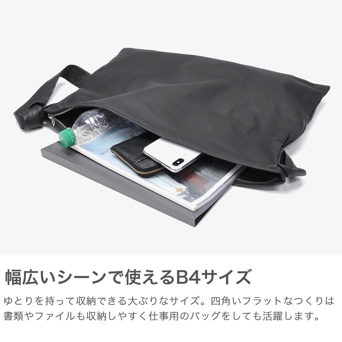シンプルさの中で際立つ素材感が魅力のショルダーバッグ。書類やファイルが収納しやすい大きめサイズとなっています。ナチュラルなコーデから少しキレイめなコーデまで幅広く活躍してくれるデザインです。ショルダーの長さや結び方はアレンジでき、自分次第でどんなスタイルにもマッチしてくれます。
