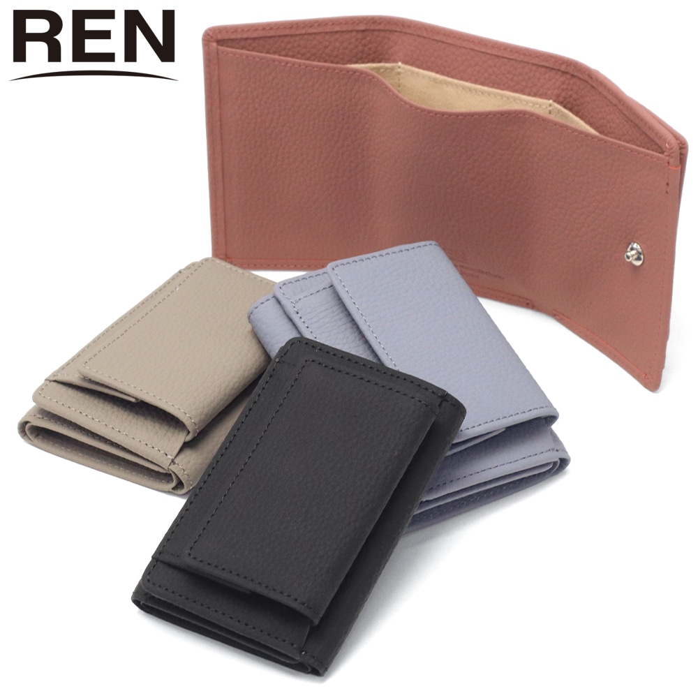 REN 三つ折り財布 レディース 革 ブランド かわいい レン 財布 本革 牛革 レザー コンパクト ミニ 小さい 小さめ ボックス型 小銭入れ 三つ折り シンプル おしゃれ 日本製 #51 PHILIP ミニウォレット 3-51-10100