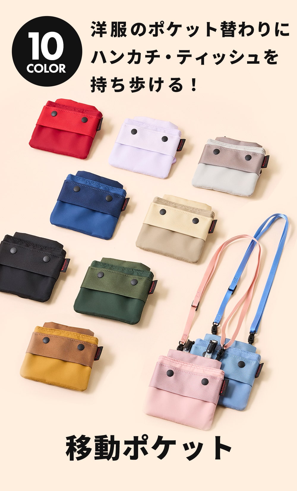 洋服のポケット替わりに、ハンカチ・ティッシュを持ち歩ける
