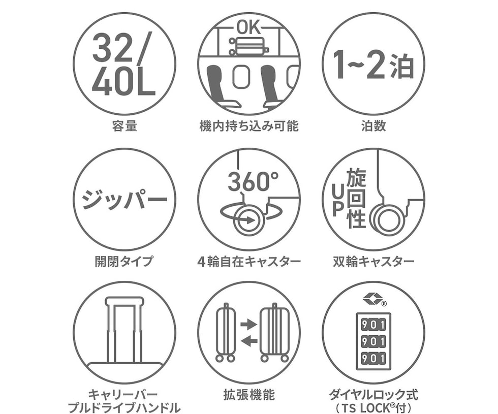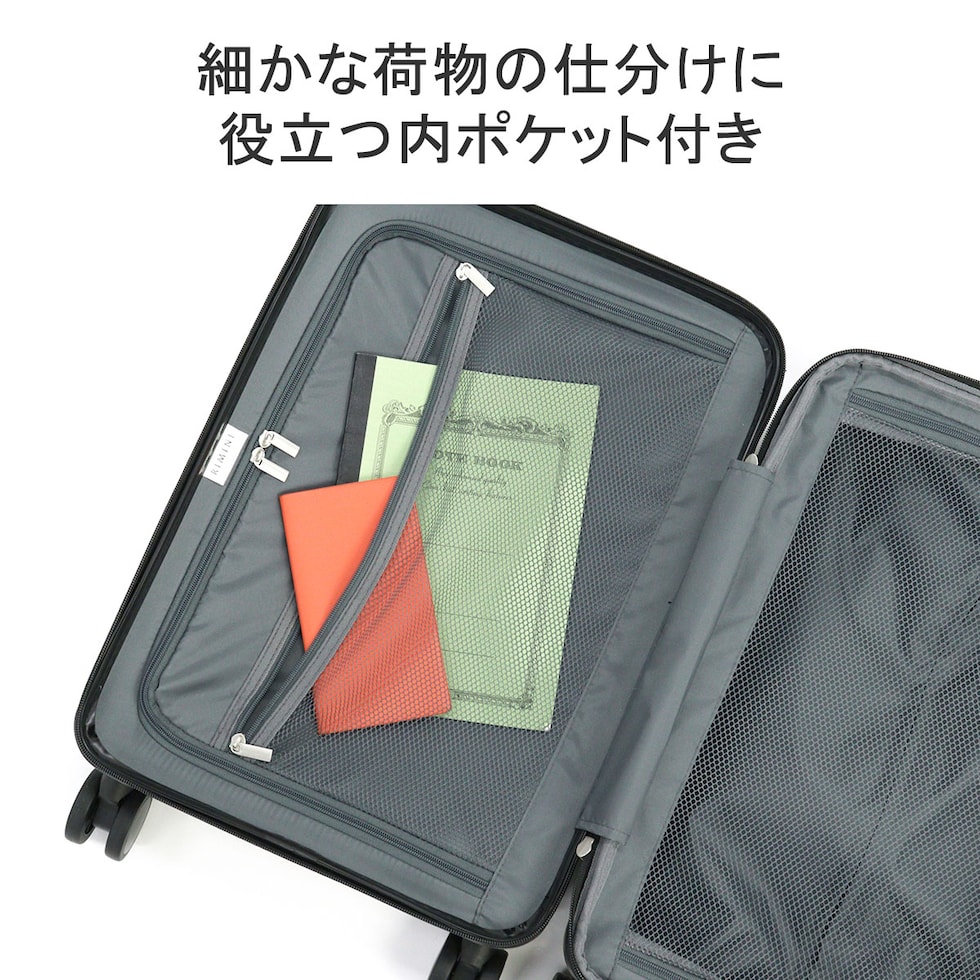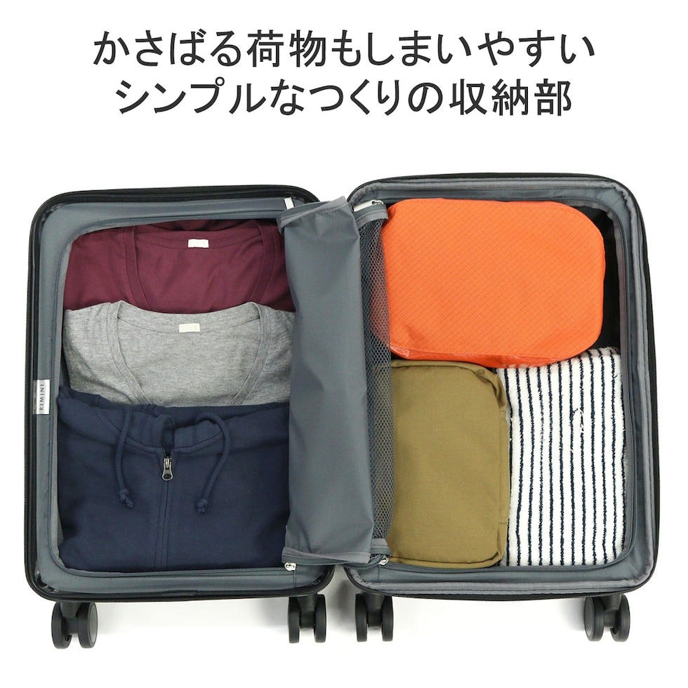 クリーンでシンプル、そして高品質なトラベルブランド『RIMINI/リミニ』。こちらは、機内持ち込み可能タイプのコンパクトなスーツケースです。容量はエキスパンダブル機能搭載で、32L~40Lに拡張可能。荷物をざくざく収納できるシンプルな内装設計や、滑らかに走行できる双輪キャスター、海外旅行にも安心のTSロック付である等、旅行を快適にサポートする機能性に富んだ仕上がりとなっています。