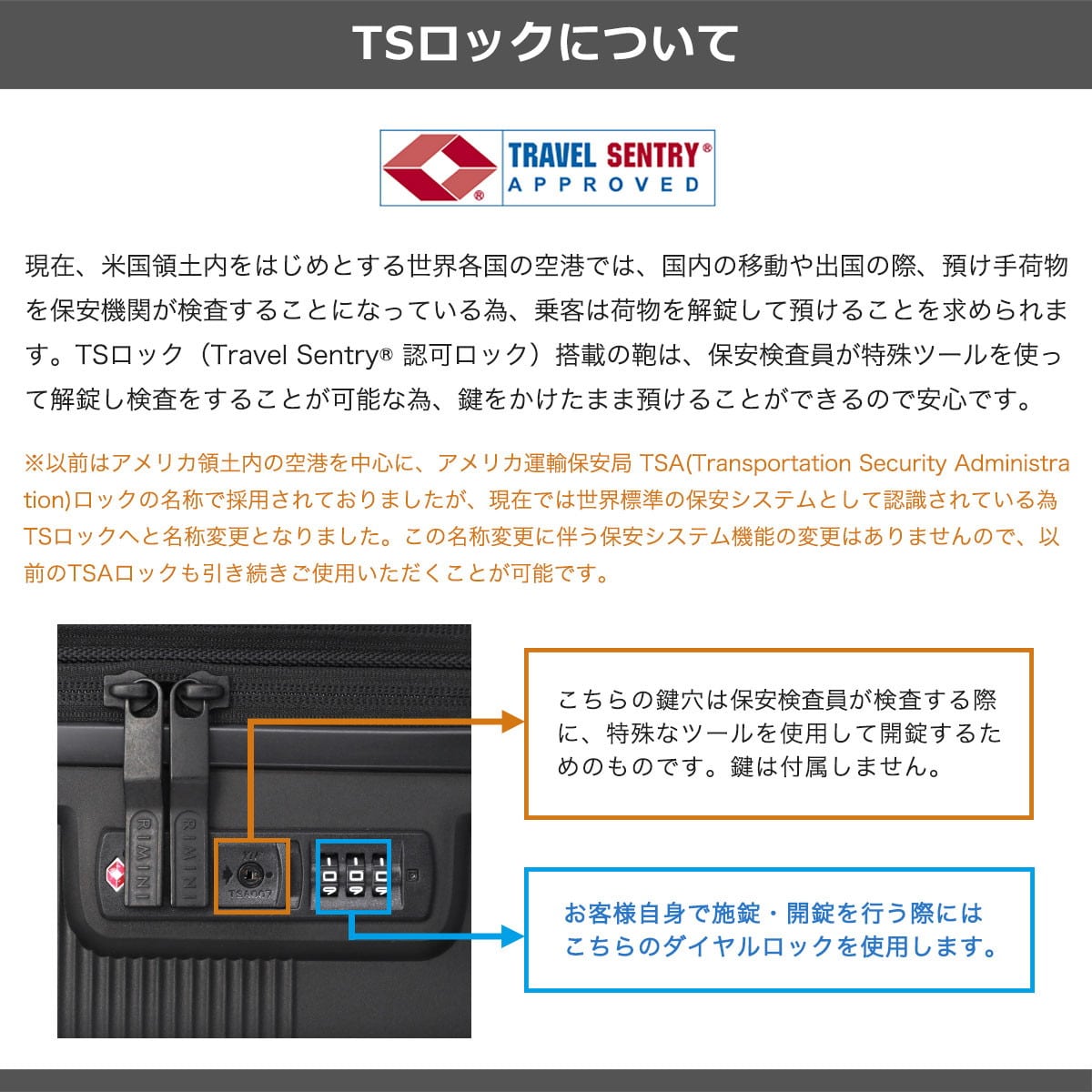 <購入前にご確認ください>・メーカーの意向により、付属品の収納袋や箱、製品の仕様やデザインは予告なく変更となる場合がございます。・下記による返品・交換はお受けすることができませんので、予めご了承ください。└ 製品の性質上による細かいキズや塗装ムラ、気泡などがある場合。└ 配送用の段ボールにキズ、汚れ、破損がある場合。・エキスパンダブル機能付きの製品は、マチ拡張時の3辺の和が機内持ち込みサイズ、預け入れ無料サイズを超える場合がございます。また、航空会社や飛行機の機種などによって規定が異なりますので、予めご確認の上お求めください。※機内持ち込みサイズ目安表はこちら・荷物をお預けの際は、キャスターストッパーをOFFにしてください。・水濡れ(雨・汗など)や日焼けにより、色落ち、退色する恐れがございます。商品のお取り扱いには十分にご注意ください。・柄の位置やカラーバランスなどは、生地の裁断や製造過程、素材の特性により画像とは異なる場合がございます。商品をお選びすることはできませんので、予めご了承ください。・極力実物に近い色味を再現しておりますが、モニター等の条件により画面上と実物では色味が異なって見える場合がございます。