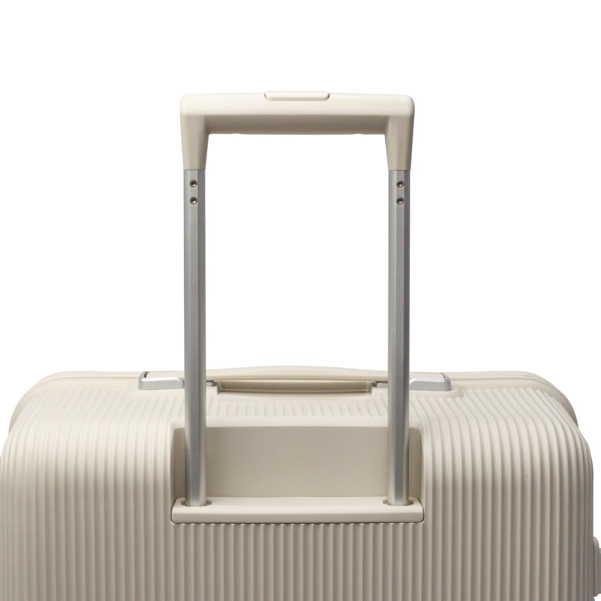 落ち着いた印象のマットシェルに、多方向からの流れるラインのリブが映える『RIMINI』のスーツケース。ダイヤル式TSAロックや安定感のある双輪キャスターを備え、8?9泊の旅行や出張にも最適。正面中央にはトランクの上げ下ろしがしやすいハンドルを搭載。荷物の多い長期旅行時の負担を軽減してくれます。