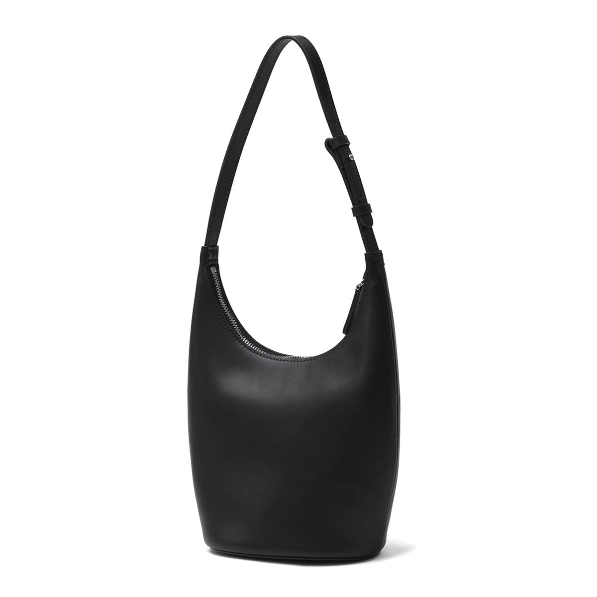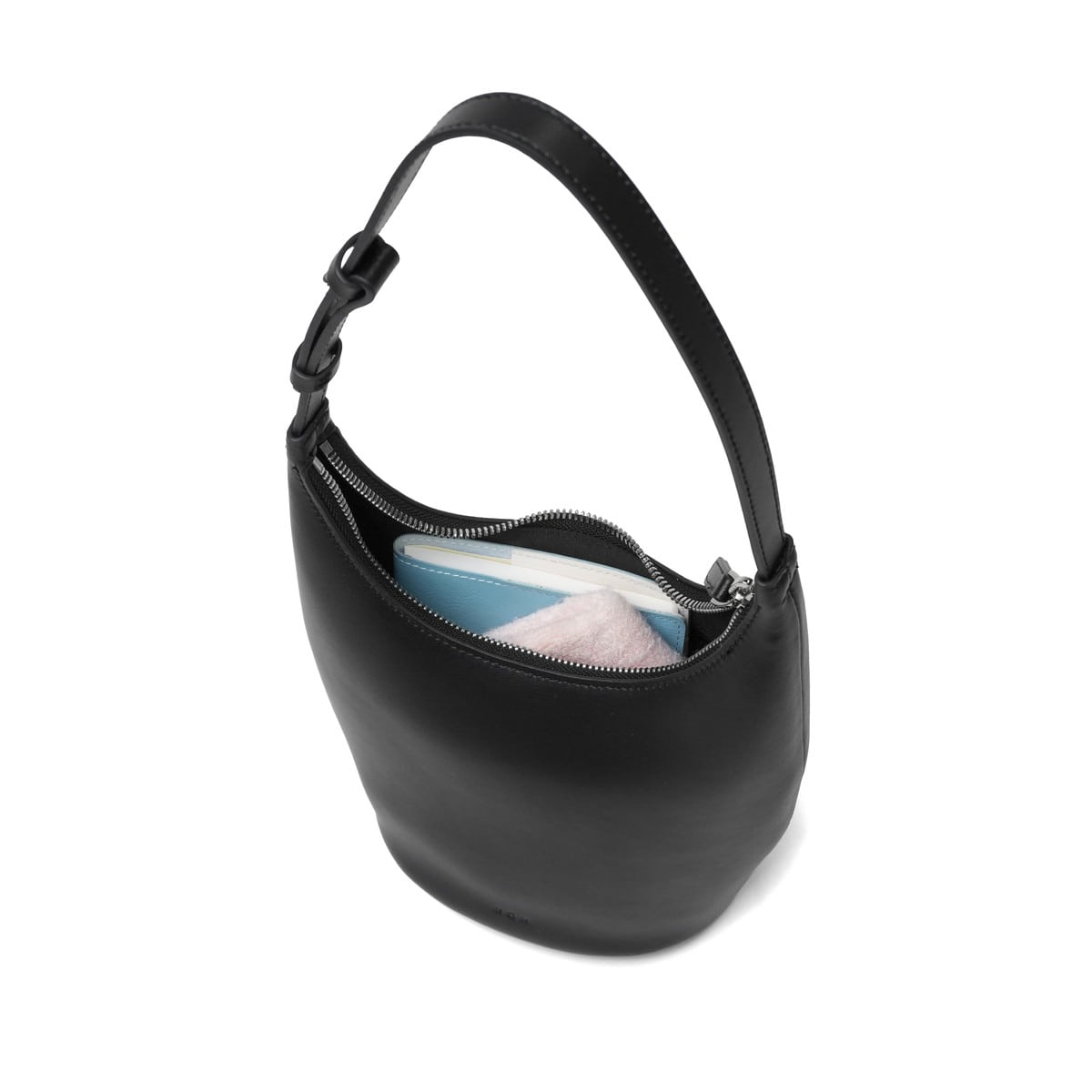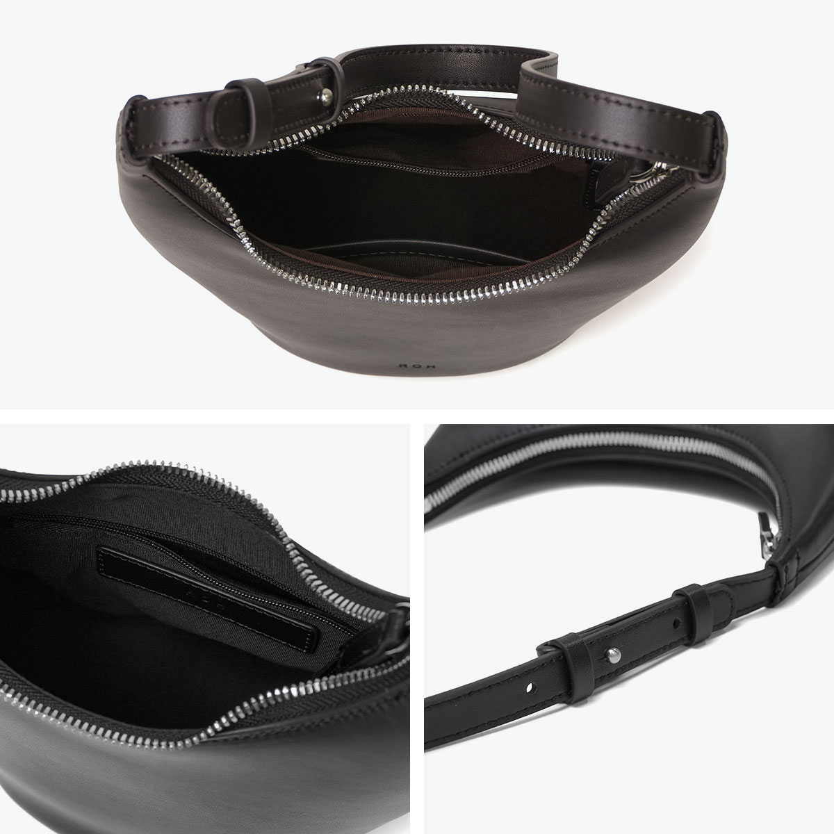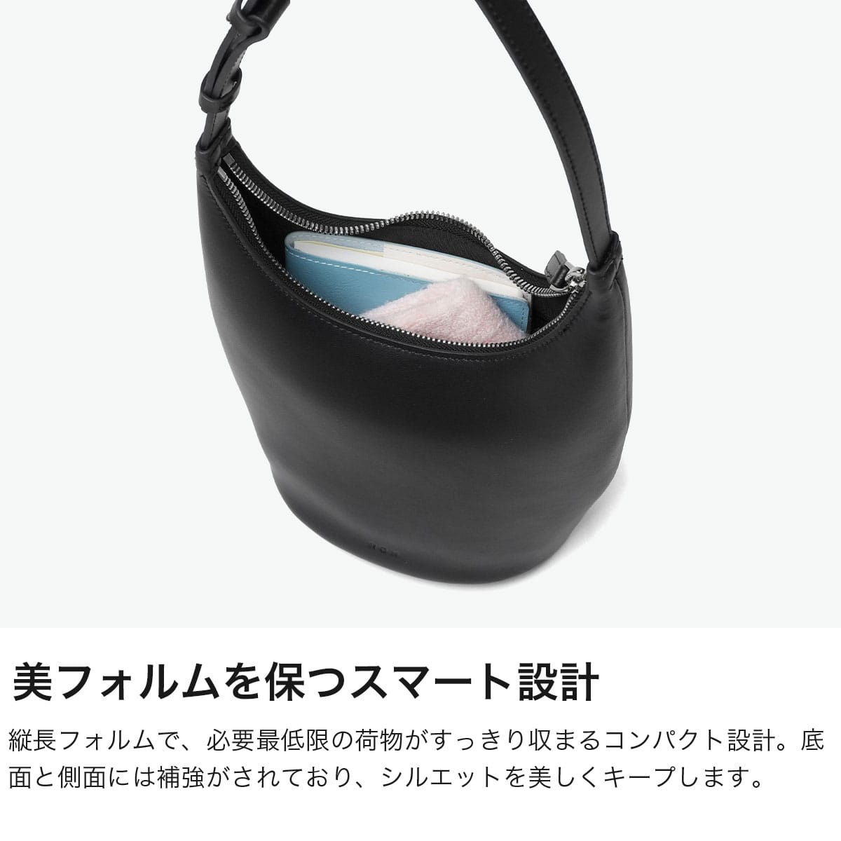 肩にかけたときの快適さを追求した、ミニサイズのホーボーバッグ。腕・肩・脇のあいだに自然にできる空間に着目し、そのフォルムをそのままデザインに落とし込んだシルエットが特徴です。全体に柔らかな曲線を描くフォルムが、体にやさしく寄り添い、下向きのカーブジップが肩の可動域を妨げない設計に。本革ならではの上質感に加え、補強された底面と側面で美しいフォルムをキープ。コンパクトながら実用性も備えた、上品な一品です。