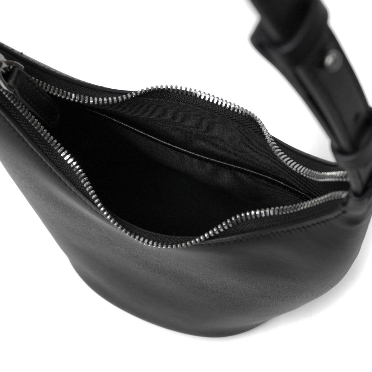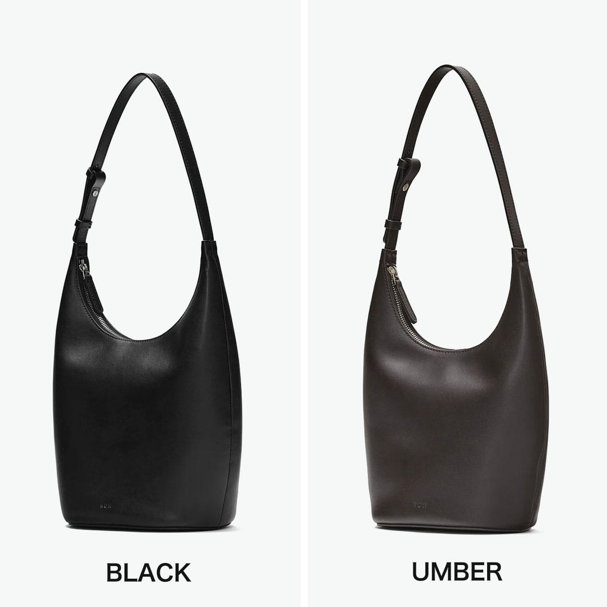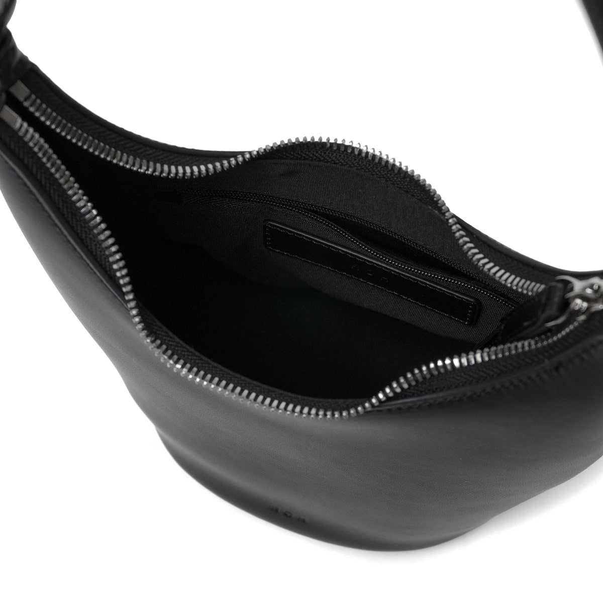 肩にかけたときの快適さを追求した、ミニサイズのホーボーバッグ。腕・肩・脇のあいだに自然にできる空間に着目し、そのフォルムをそのままデザインに落とし込んだシルエットが特徴です。全体に柔らかな曲線を描くフォルムが、体にやさしく寄り添い、下向きのカーブジップが肩の可動域を妨げない設計に。本革ならではの上質感に加え、補強された底面と側面で美しいフォルムをキープ。コンパクトながら実用性も備えた、上品な一品です。