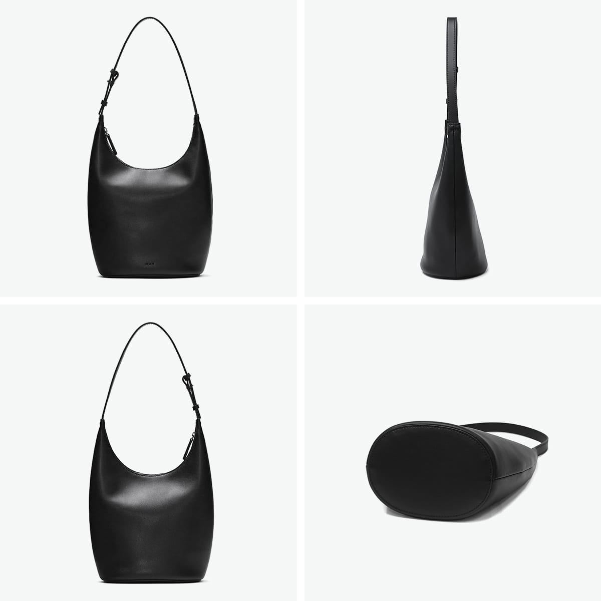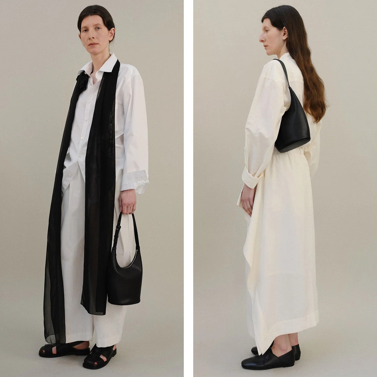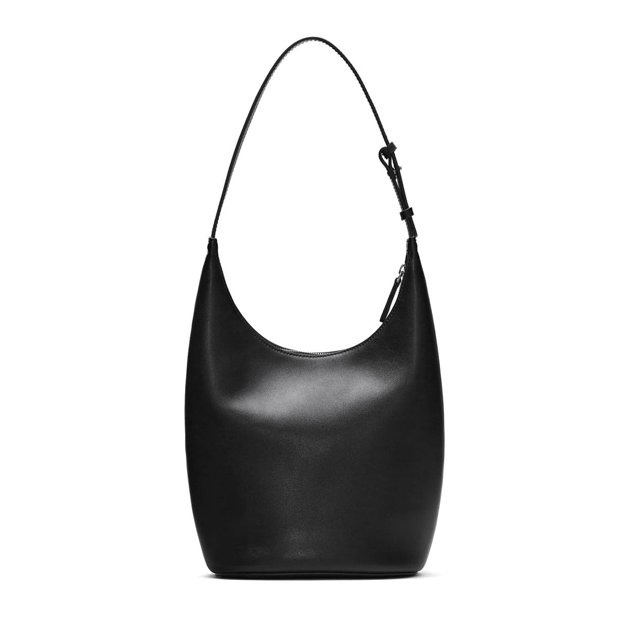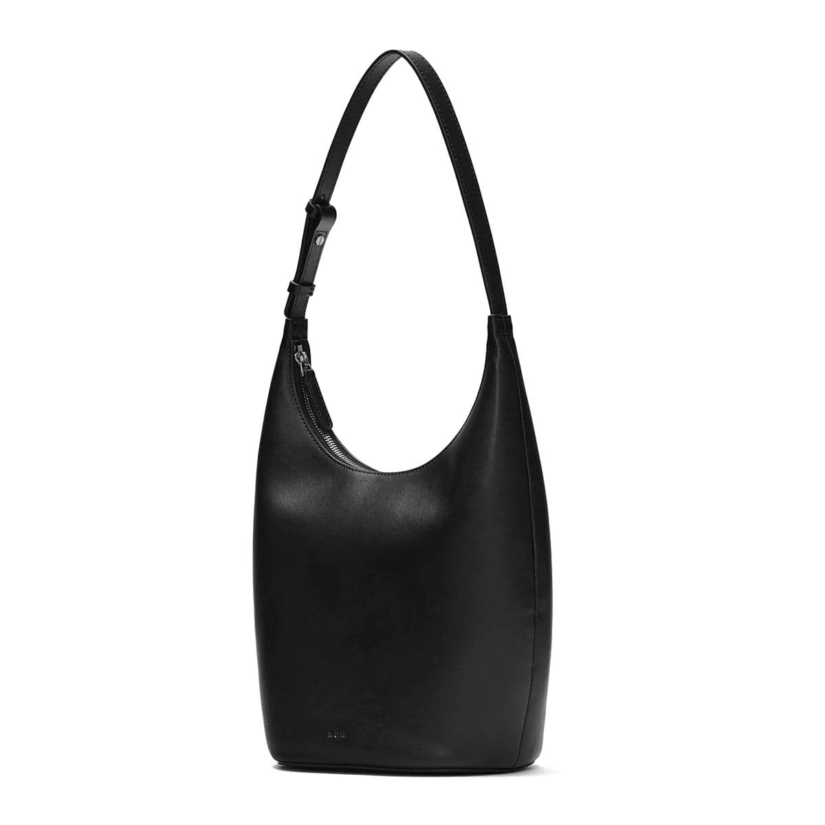 肩にかけたときの快適さを追求した、ミニサイズのホーボーバッグ。腕・肩・脇のあいだに自然にできる空間に着目し、そのフォルムをそのままデザインに落とし込んだシルエットが特徴です。全体に柔らかな曲線を描くフォルムが、体にやさしく寄り添い、下向きのカーブジップが肩の可動域を妨げない設計に。本革ならではの上質感に加え、補強された底面と側面で美しいフォルムをキープ。コンパクトながら実用性も備えた、上品な一品です。