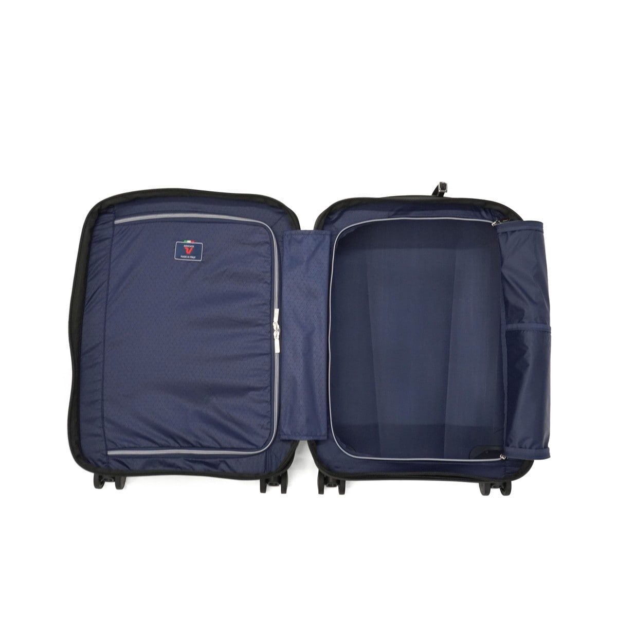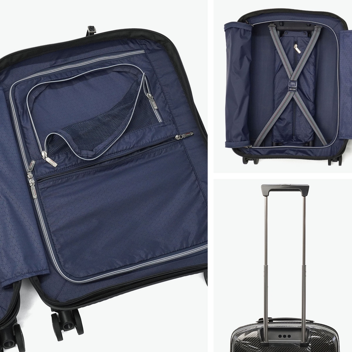 RONCATO史上最も軽く耐久性に優れた「WE ARE」に拡張性を持たせたデラックスエディション『WE ARE DLX』。こちらは、容量37/44Lのスーツケース。拡張前サイズが、機内持ち込みに対応したコンパクトサイズ。BMWやフォルクスワーゲンのデザインにも携わった工業デザイナー Lamberto Angeliniのデザインを纏ったシェルは美しく機能的です。本体には旅の記憶と共に美しく経年変化するイタリアンレザー製ネームタグを付属しています。