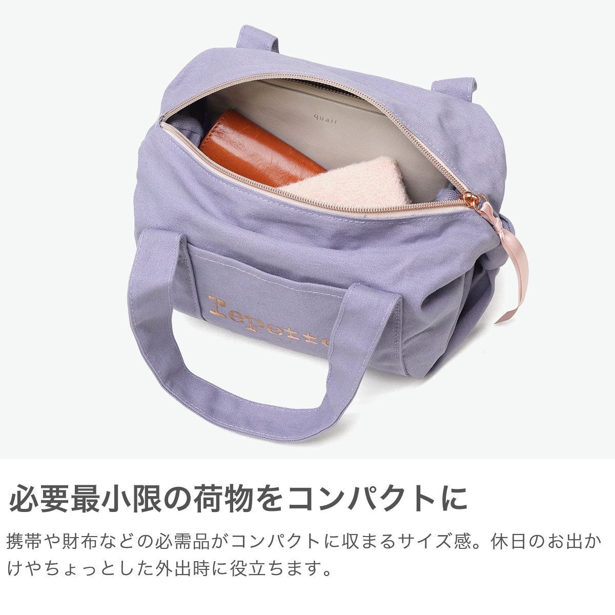 『Repetto』で人気のミニボストンのSサイズ。上質なコットン素材を使用し、ワンポイントのロゴやリボンが大人可愛い印象を演出します。ミニボストンとして、カジュアルなコーディネートにぴったりなアイテムです。どんなシーンにも馴染むシンプルでおしゃれなバッグです。