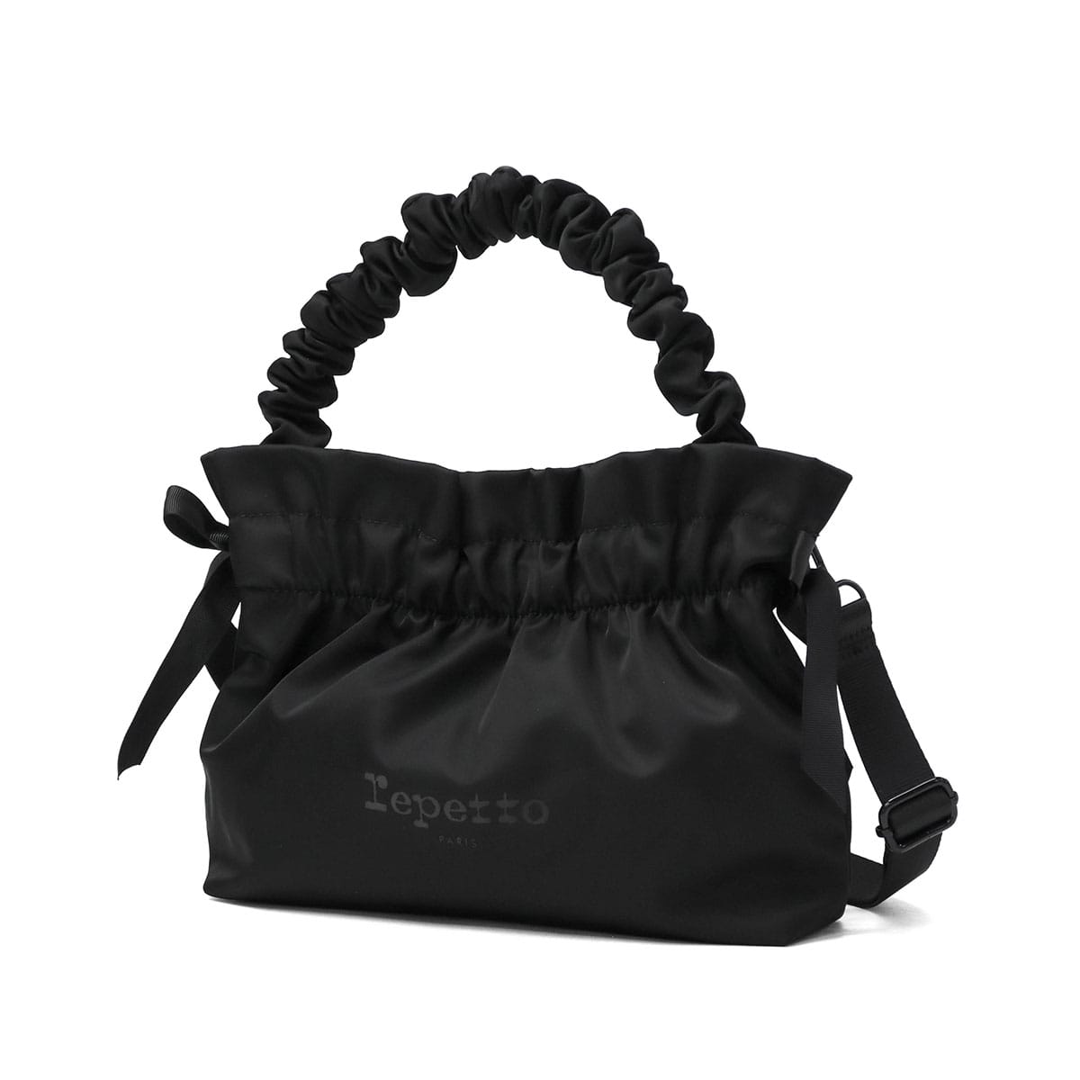 くしゅっとしたハンドルとサイドリボンが愛らしいミニバッグ。取り外し可能なストラップ付きで、ハンドバッグ・ショルダーバッグになる便利な2WAY仕様です。フロントにはさりげなくロゴをあしらい、デザインのアクセントに。おしゃれなお出かけスタイルが完成するアイテムです。