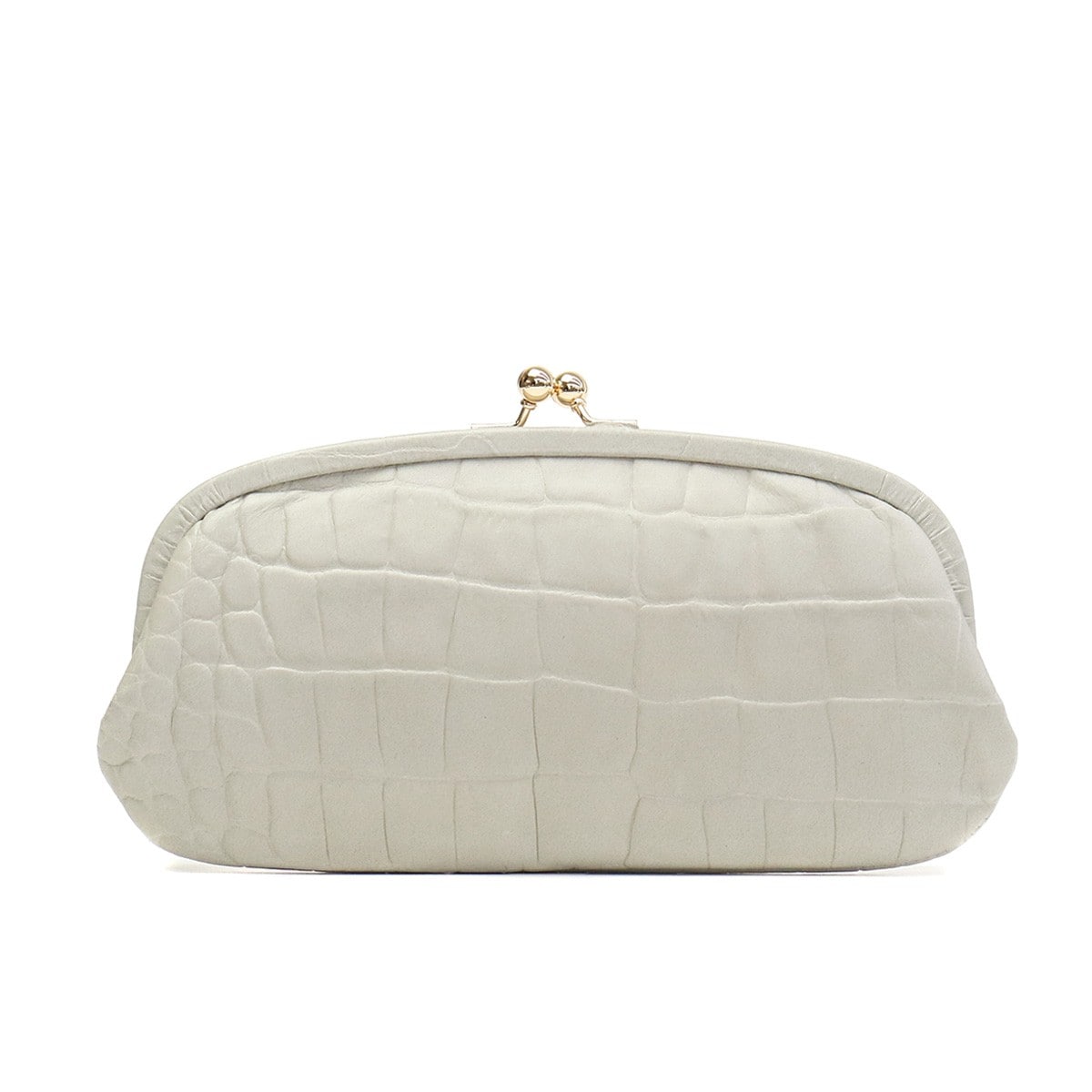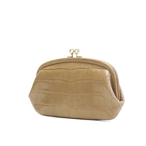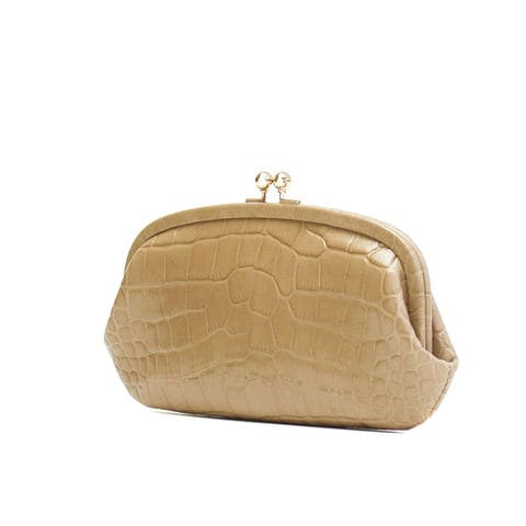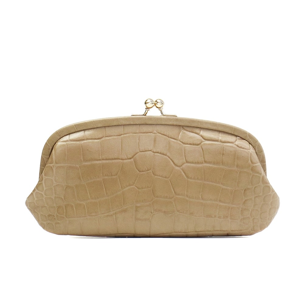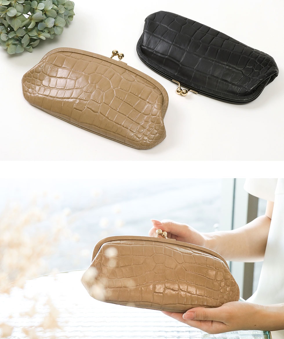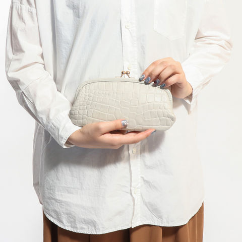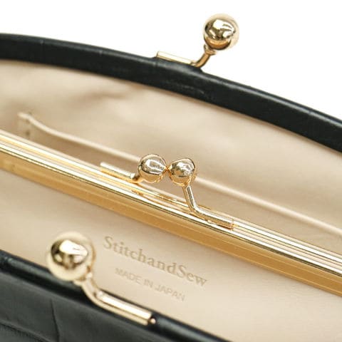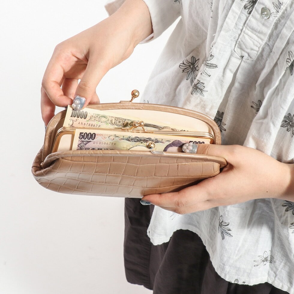 『StitchandSew/ステッチアンドソー』の人気アイテム「がま口長財布」。こちらは素材にクロコダイル型押しを施した、牛革を贅沢に使用。高級感のある型押し素材と、丸みをおびたフォルム、ゴールドのパーツが女性らしく雰囲気のあるアイテムに仕上がっています。
