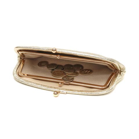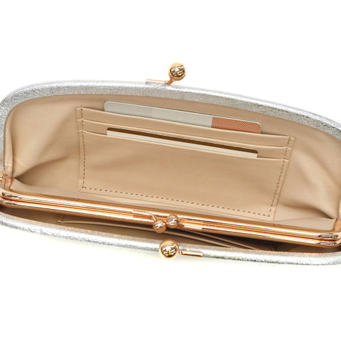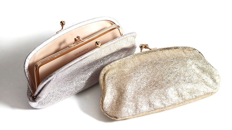 『StitchandSew/ステッチアンドソー』の人気アイテム「がま口長財布」。素材にはソフトでふっくらとした山羊革を贅沢に使用。ゴールドとシルバーのメタリックカラーが手元を華やかに彩ります。丸みをおびたフォルムとゴールドのパーツから女性らしい雰囲気を感じられるアイテムに仕上がっています。
