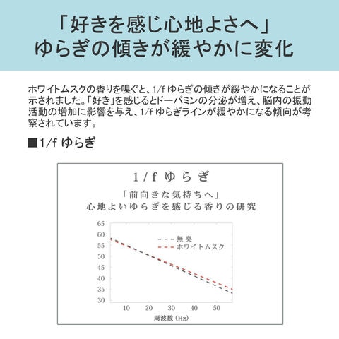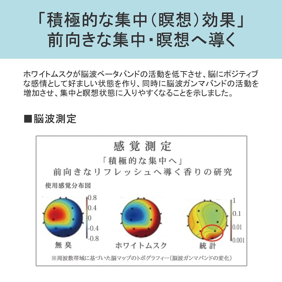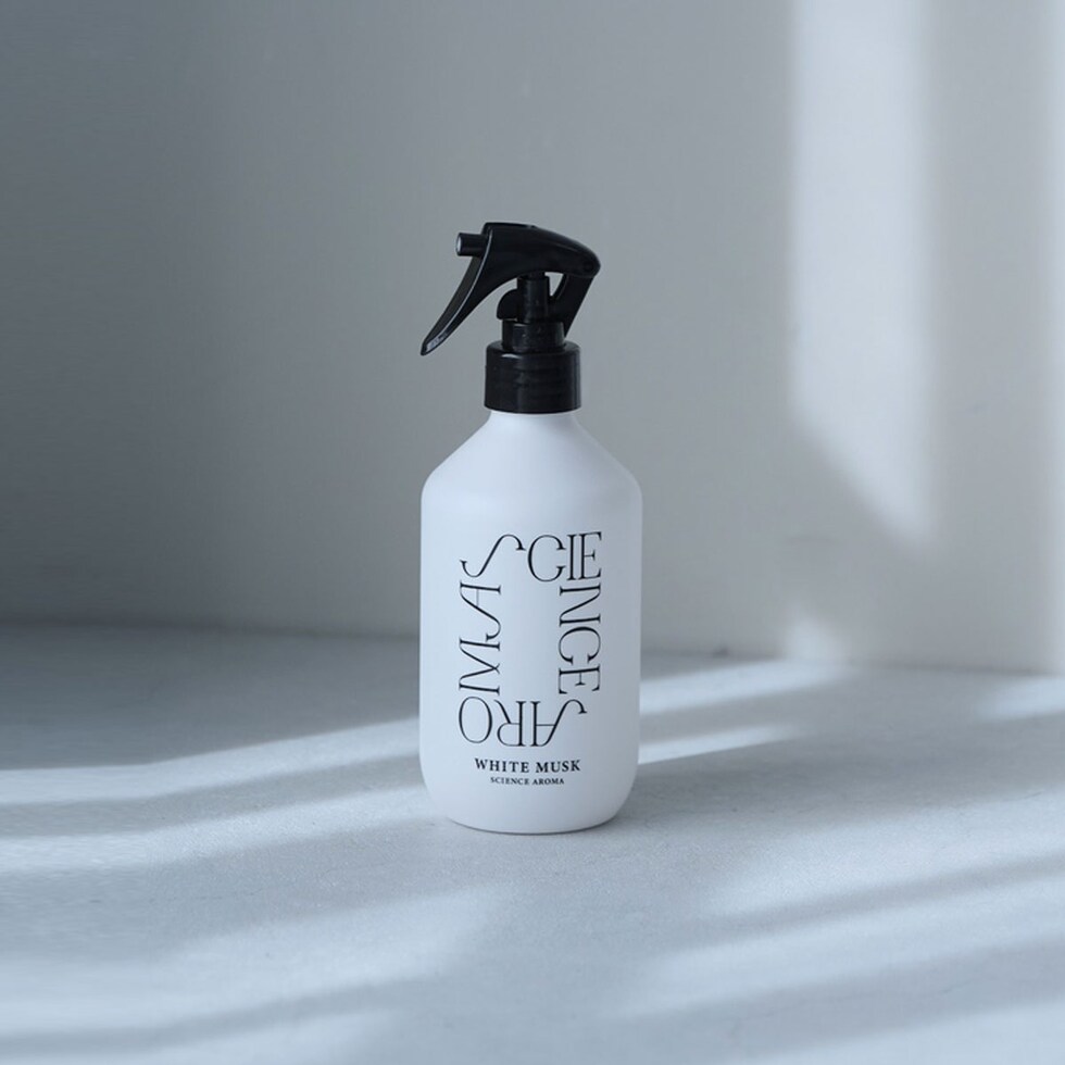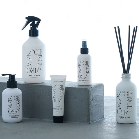 香りの効果・効能について科学的にアプローチするブランド『サイエンスアロマ』。こちらは、九州大学との共同研究により香料が分析された、ホワイトムスクの香りのルームミストです。科学的に考案され独自のレシピで作成したユニセックスなホワイトムスクの香りが、癒しへと導きます。植物性消臭成分が配合され、良い香りは空間に広がり、気になる臭いを消臭します。塗布面に対して除菌、抗菌、ウィルス抑制効果を発揮します。