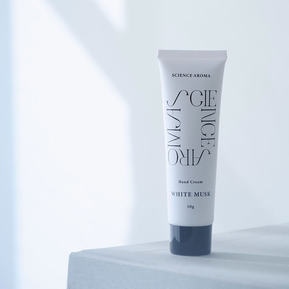 香りの効果・効能について科学的にアプローチするブランド『サイエンスアロマ』。こちらは、九州大学との共同研究により香料が分析された、ホワイトムスクの香りのハンドクリームです。科学的に考案され独自のレシピで作成したユニセックスなホワイトムスクの香りが、癒しへと導きます。植物性保湿成分が贅沢に配合され手指に潤いと豊かな香りを残すのが魅力。無着色、アルコールフリー仕様です。