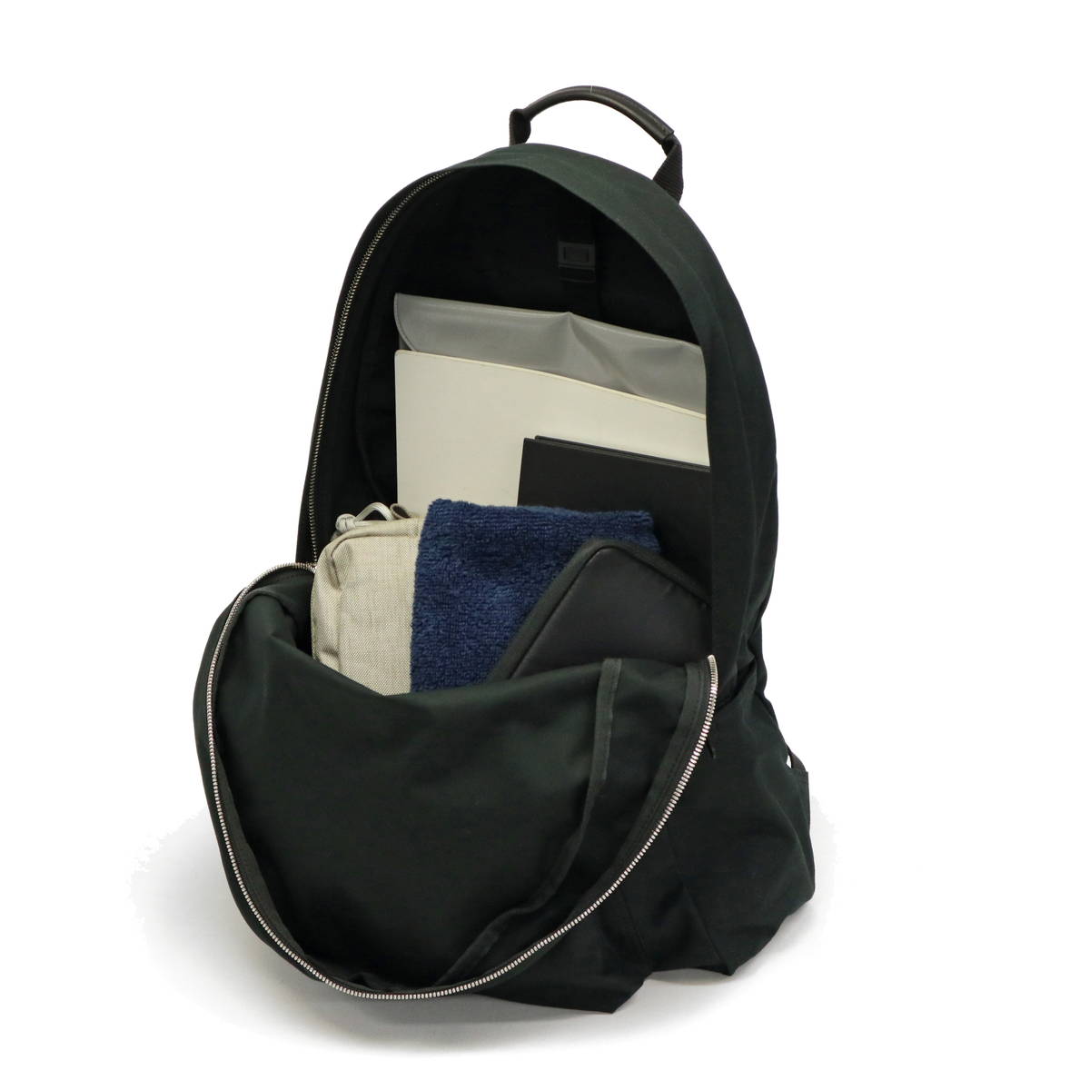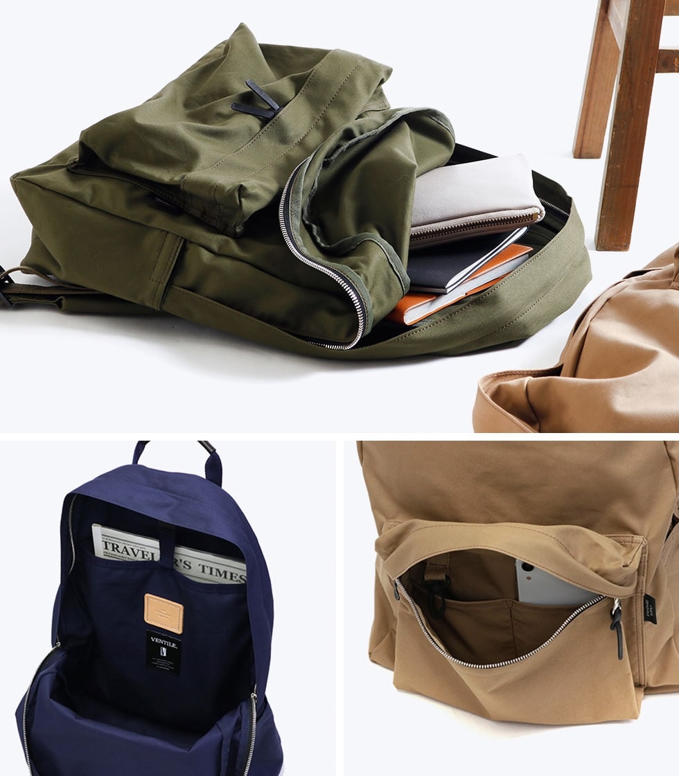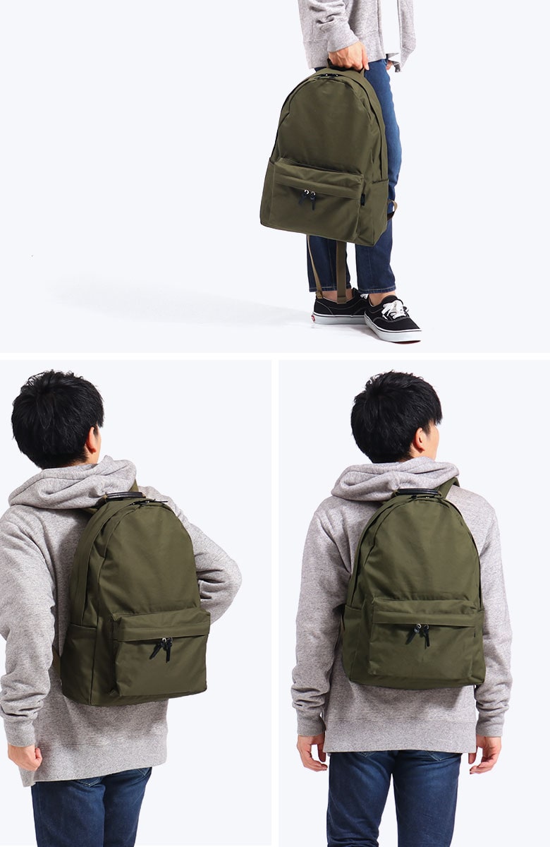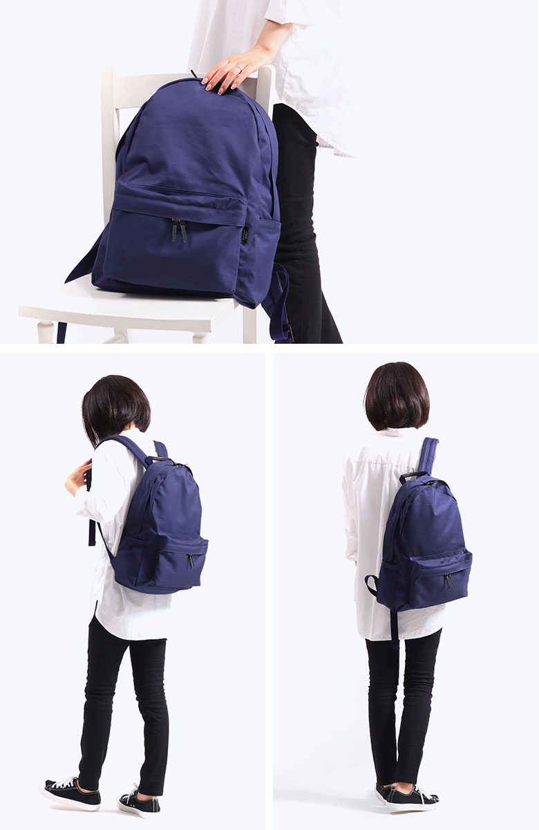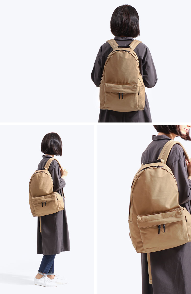 収納スペースはA4サイズ対応の大きさで、デイパックの基本とも言えるベーシックなデザインが魅力的。デイリーからお出掛けまで使いやすい汎用性の高いサイズ感です。内外には複数ポケットを備えているため、アイテム管理もしやすく整理整頓できるつくりとなっています。