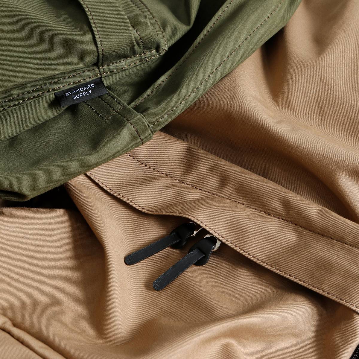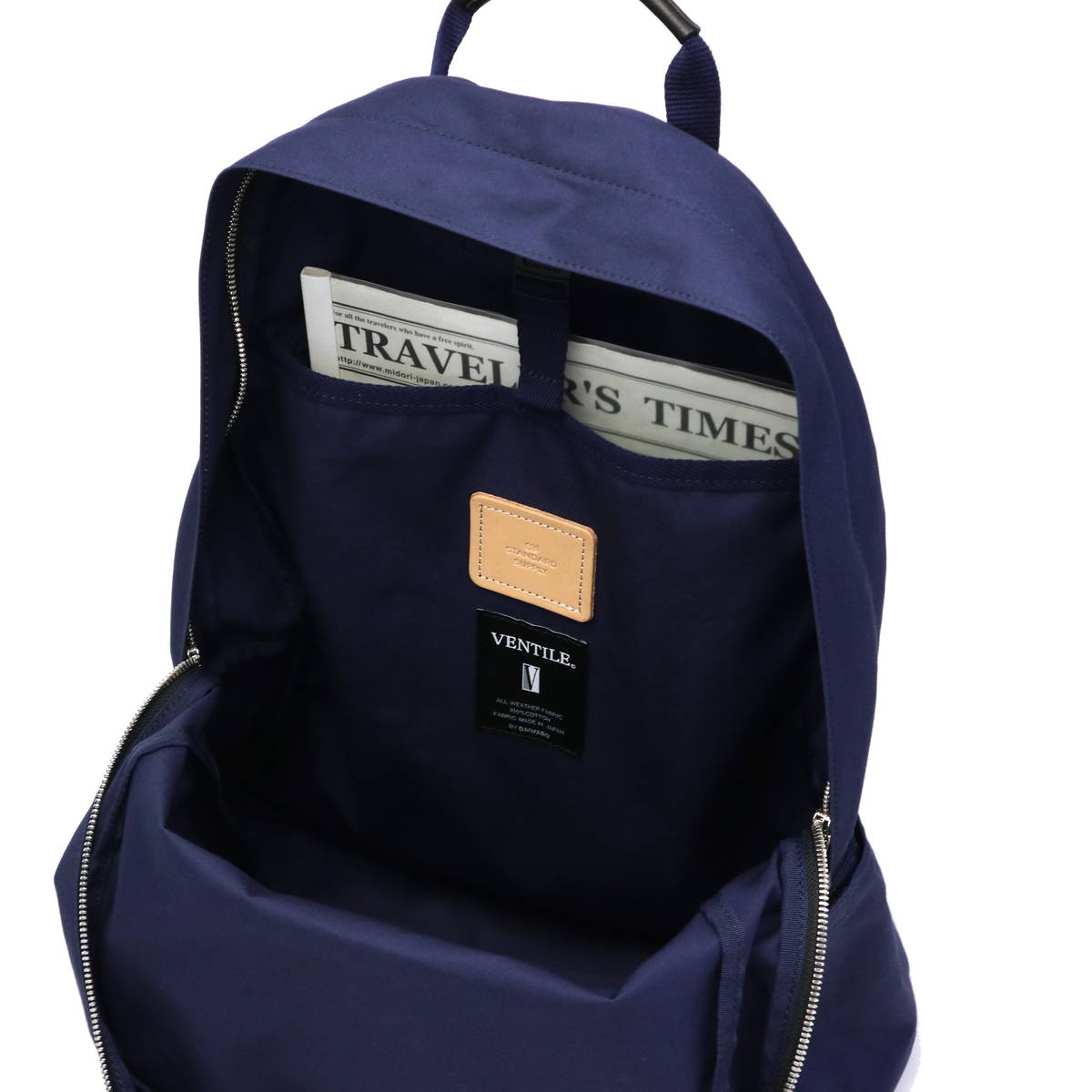 素材には、綿の糸を限界まで打ち込み、織り機の密度を限界以上に上げて織った高級高密度生地「ベンタイル(VENTILE)」を採用。ベンタイルは、第二次世界大戦時にイギリス軍がパイロットの軍服用として開発した生地です。最大の特徴は防水・防風・浸透性で、水やホコリを通しにくく湿気を逃すという、クラシカルな見た目とは相反する頼もしい機能性が満載です。またナイロンとは違い、年月が経つほどレザーのように深みのある風合いが出てきます。