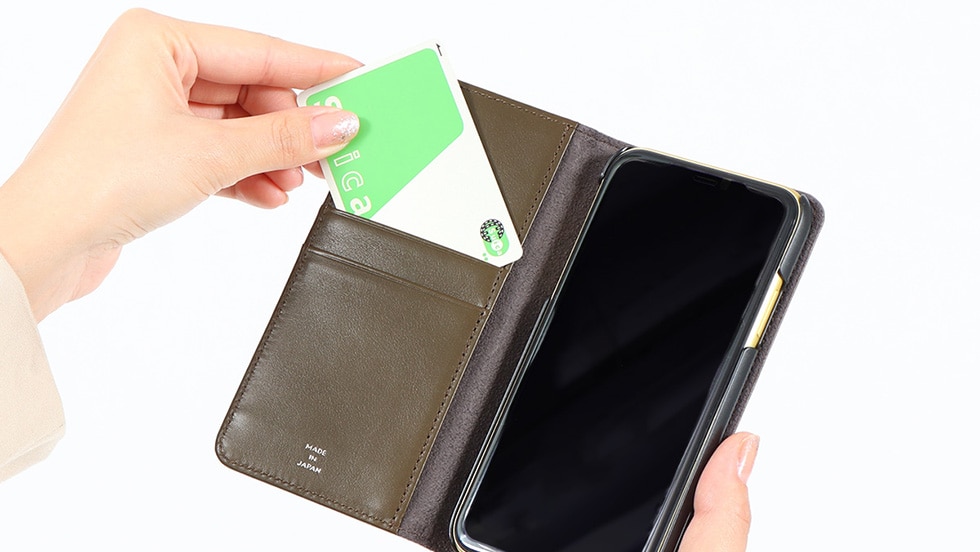 手帳を開いた左側には計3つのポケットを備えていますので、ICカード等を入れれば身軽な外出ができる、キャッシュレスな現代に最適な仕上がりとなっています。