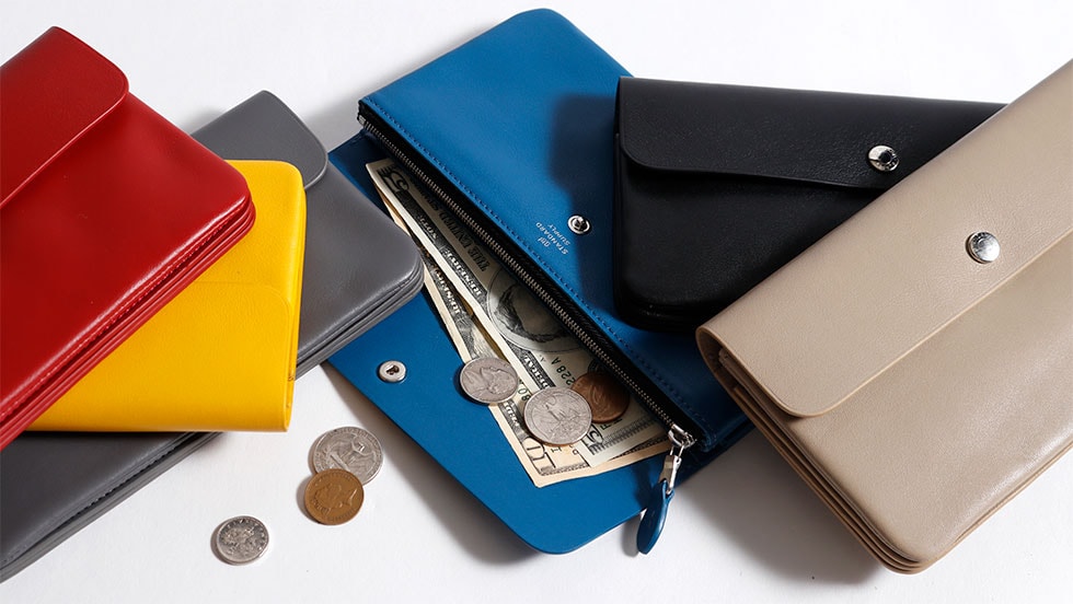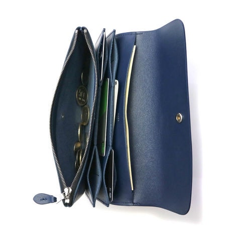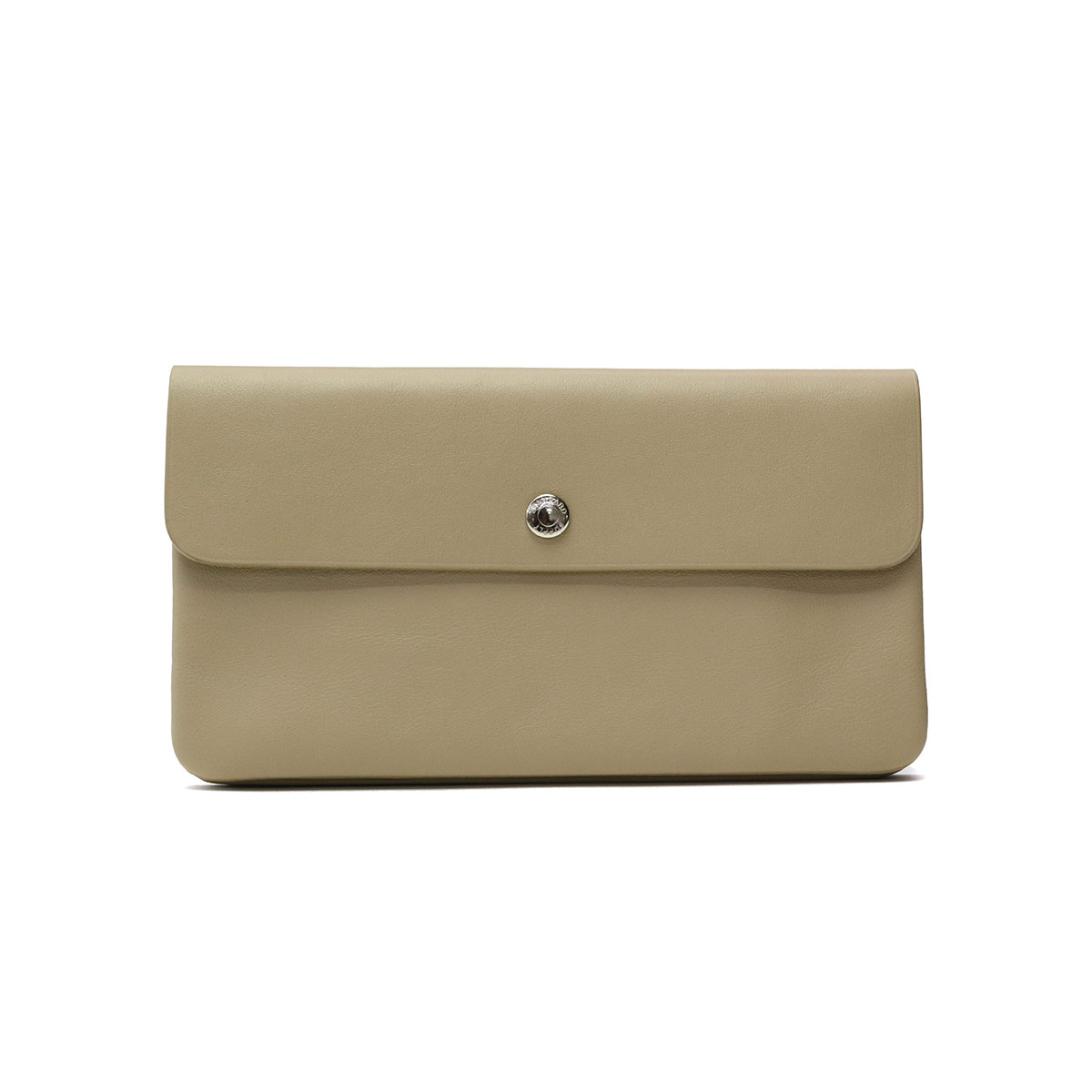 手触りの良い柔らかな質感のレザーを使用した長財布。ブランドロゴを刻印した艶のあるスナップボタンが上品な印象をプラスしています。シンプルなデザインで性別問わずお使いいただけるので、ギフトにもおすすめのアイテムです。