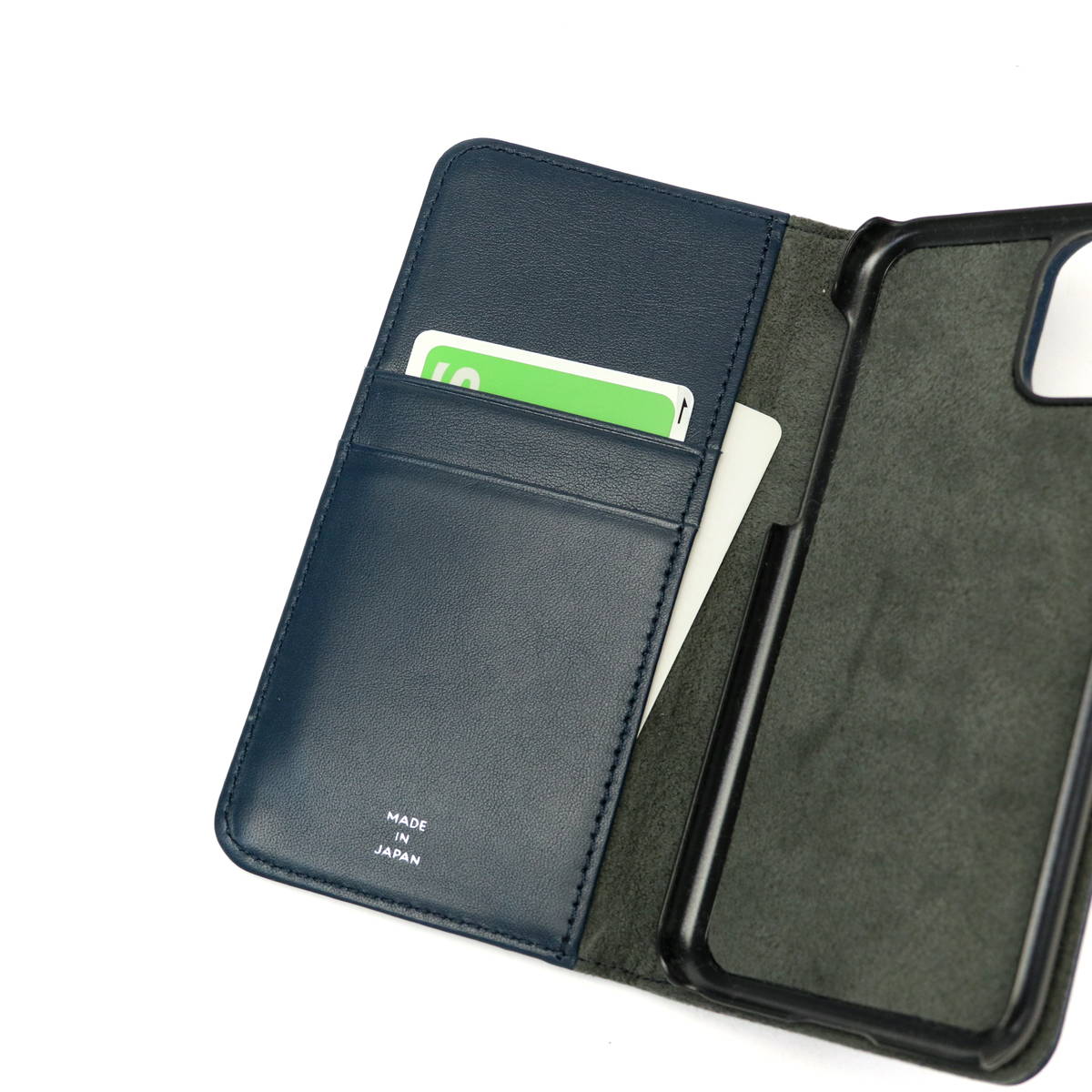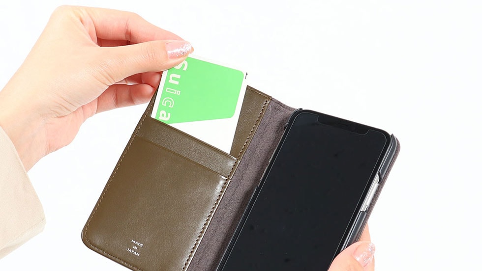 手帳を開いた左側には計3つのポケットを備えています。ICカード等を入れて身軽な外出ができる、キャッシュレスな現代に最適な仕上がりとなっています。