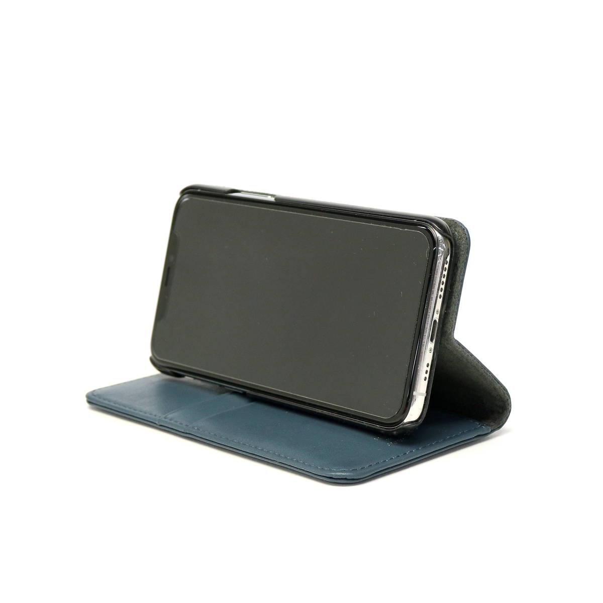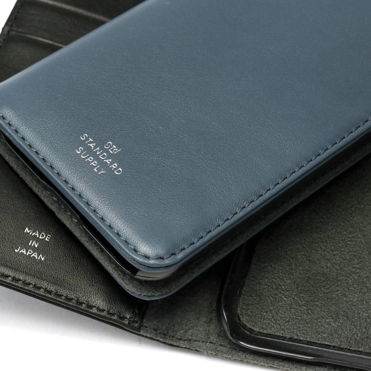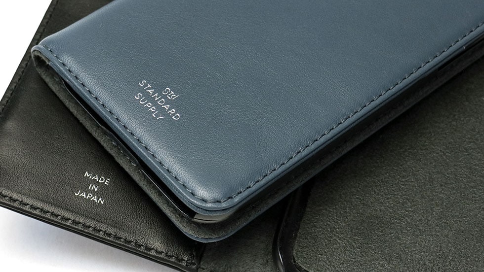 メイン素材には、イタリア製のナッパレザーを採用しています。クロームなめしの特性を生かしたソフトな風合いと、透明感のある発色の良さがこの革の特徴です。裏地の素材には手触りの良い国産のフェイクスウェード生地を使用していますので、端末を装着する際の当たりも柔らかです。