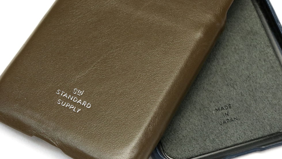 メイン素材には、イタリア製のナッパレザーを採用しています。クロームなめしの特性を生かしたソフトな風合いと、透明感のある発色の良さがこの革の特徴です。裏地の素材には手触りの良い国産のフェイクスウェード生地を使用していますので、端末を装着する際の当たりも柔らかです。