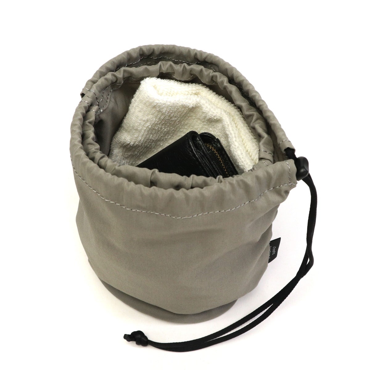 日々の生活で必要なものを、シンプルかつ機能的に持ち運べる『SIMPLICITY/シンプリシティ』シリーズ。こちらはちょっとしたお出かけにオススメの巾着ポーチ。一見通常の巾着ですが、内装はさらに巾着仕様の仕切りを備えた二重構造です。ありそうでなかったデザインが、お出かけをより快適で楽しいものに。