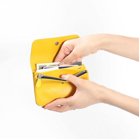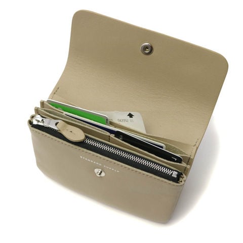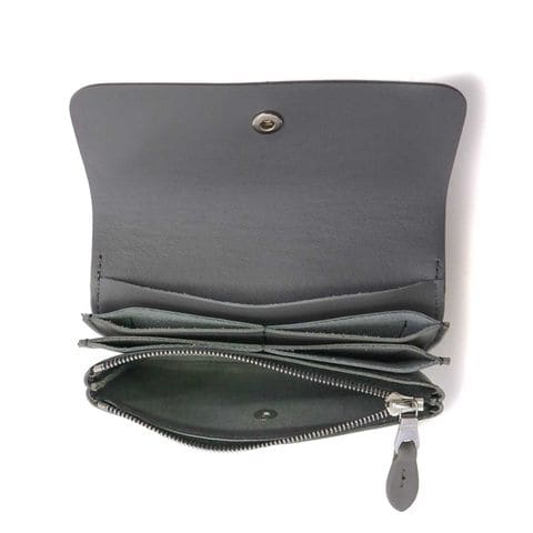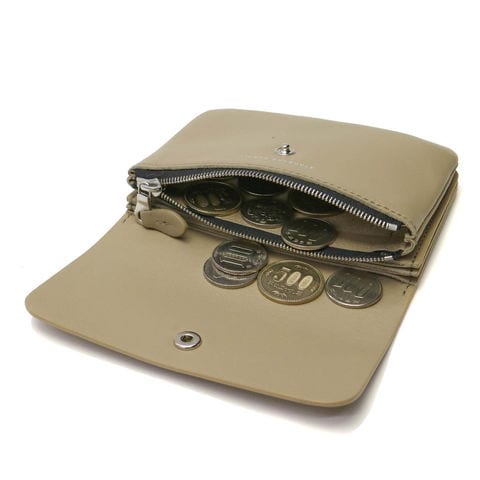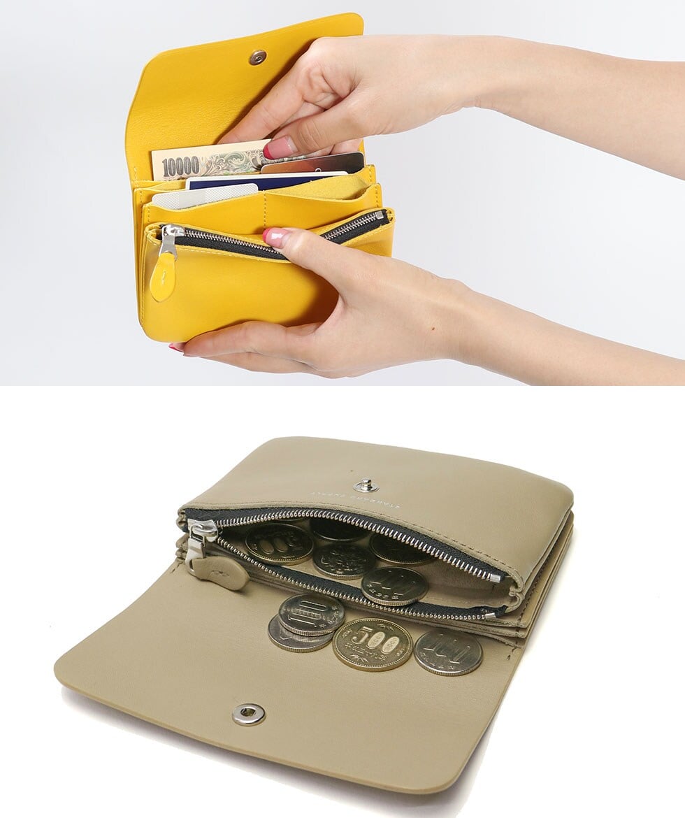 コンパクトながら必要な収納は備えた使いやすいつくり。お札は二つ折りにすることで収納することができます。収納部はお札やカードの量に応じて蛇腹状に広がるので、増えがちなカード類もすっきり収納できます。