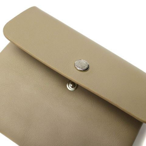 手触りの良い柔らかな質感のレザーを使用したフラップデザインのウォレット。ポケットや鞄に納まりの良い、持ち運びやすいコンパクトサイズが魅力です。ブランドロゴを刻印した艶のあるオリジナルのホックキャップが上品な印象をプラスしています。