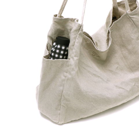 季節限定素材を使用した『DAILY LINEN』シリーズのトートバッグ。普段着のように手洗いできるので、お買い物時のマイバッグや汚れてしまうことの多いお子様とのお出かけにも安心してお使いいただけます。