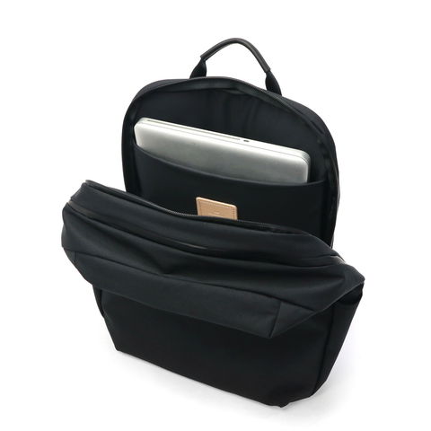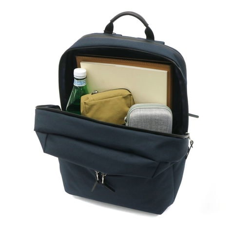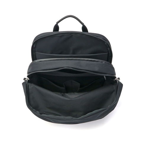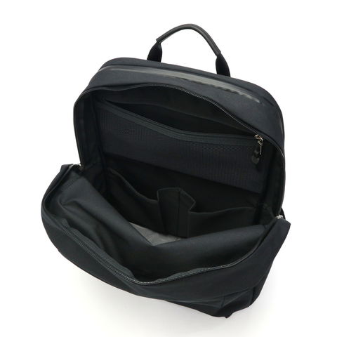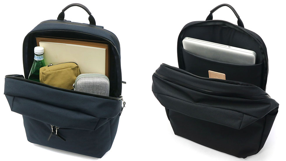 メインルームはA4サイズ対応の2層式構造。前面収納部はしっかりとしたマチ幅を備え、普段持ち歩く荷物をざっくりとしまえる他、細かいポケットでアイテム管理も楽々行えます。背面収納部は全体的にクッション性に優れた仕上がりで、13インチまでのノートパソコンを安心して持ち運びして頂けます。