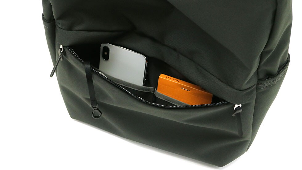 仕様 |[外側] ・ジップポケット(M)×1[ポケット(XS)×2、キーフック×1 内蔵] ・ベルクロポケット(S)×1 ・ポケット(S)×1 [前面収納]・メッシュジップポケット(M)×1・ポケット(S)×2 [背面収納] ・PC収納×1