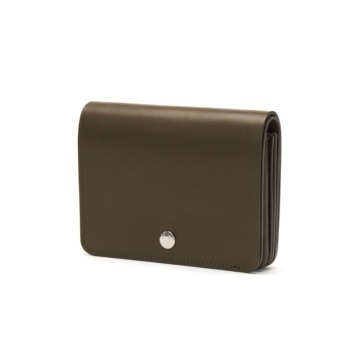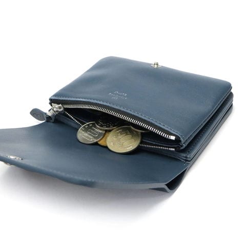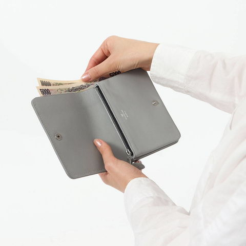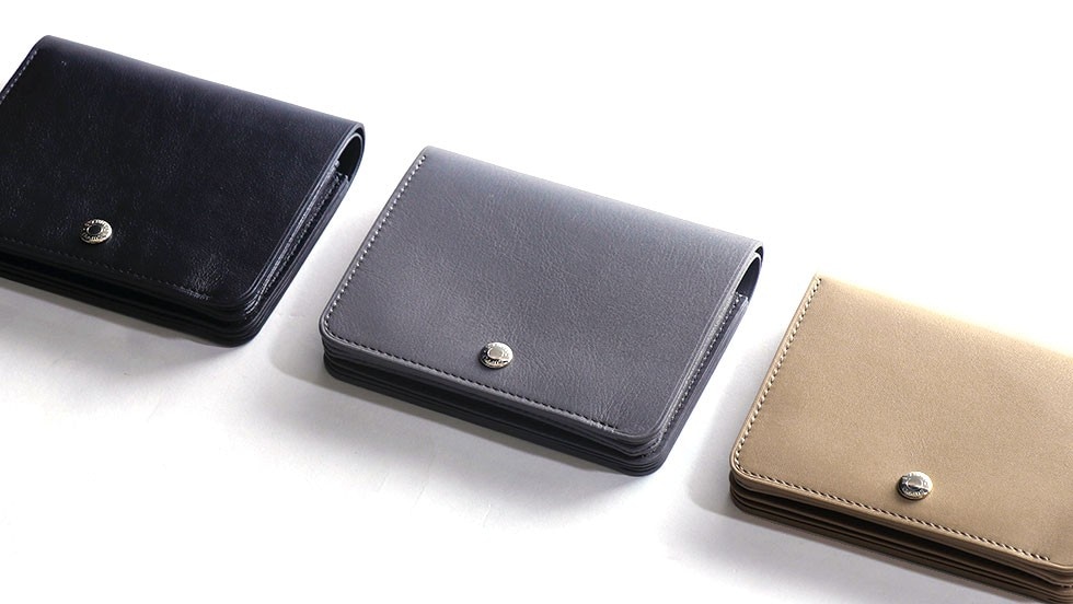 コンパクトで持ち運びやすいサイズ感が魅力の二つ折り財布。本体にはずっと触っていたくなるような手触りの良い柔らかな質感のレザーを使用しています。ブランドロゴを刻印した艶のあるオリジナルのホックキャップが上品な印象をプラスしています。