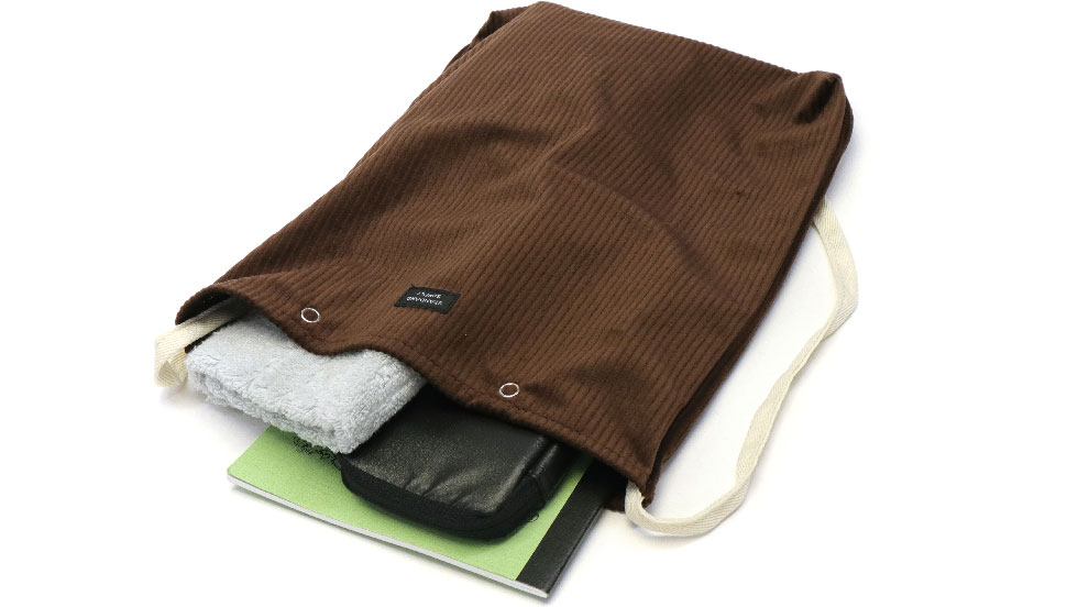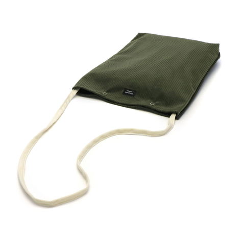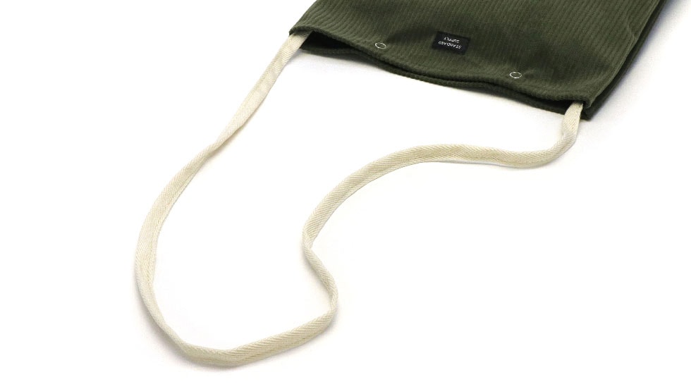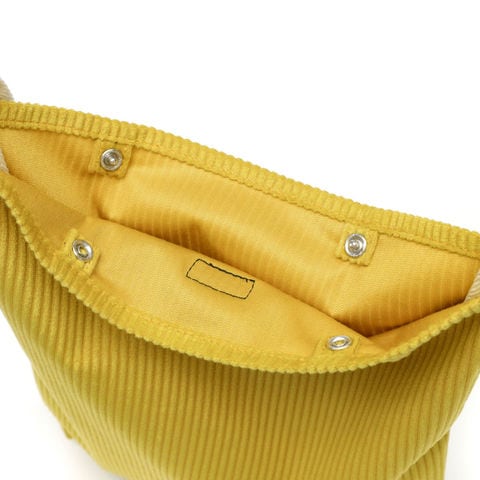 季節限定素材を使用した『DAILY CORDUROY/デイリーコーデュロイ』シリーズの縦型ショルダーバッグ。手洗いができるので汚れてしまったときもお手入れが簡単です。ショルダーには調節金具が付いていませんが、紐を簡単に結ぶことで長さが調節できます。